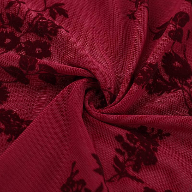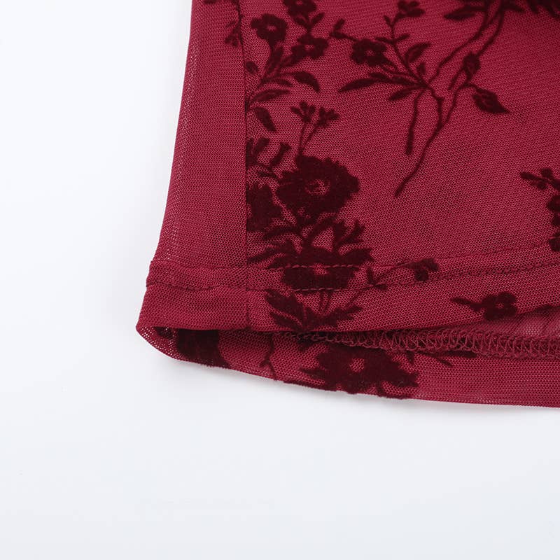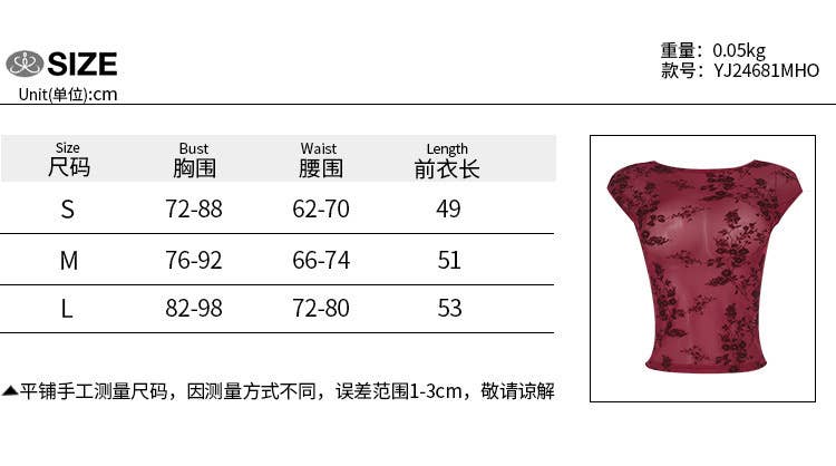 Sheer Mesh Vintage Print Sexy Top Short Sleeve