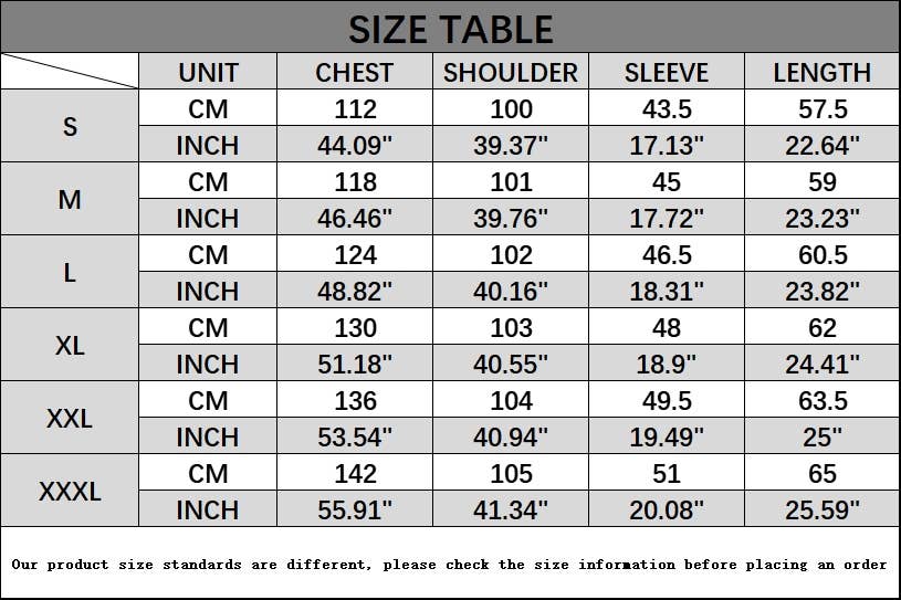 SIZES : S,M,L,XL,XXL,XXXL