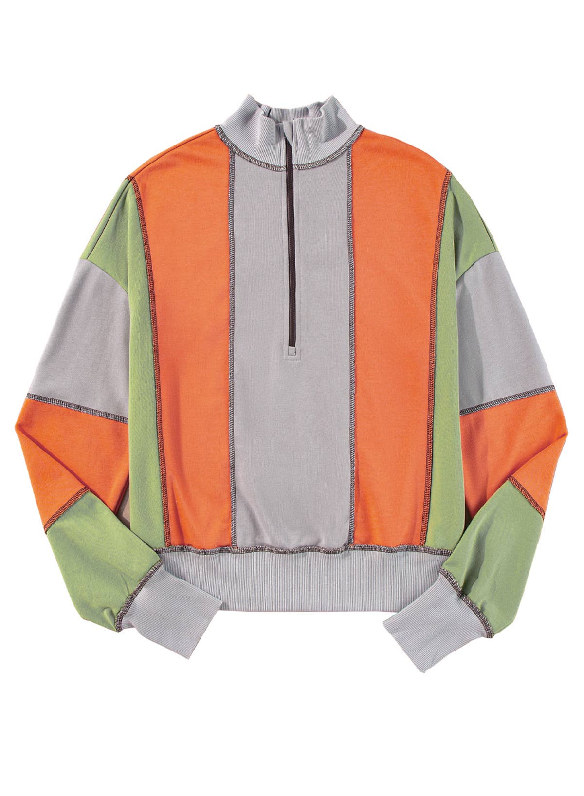 SIMPLE FASHION COLOR MATCHING CASUAL PULLOVER TOP