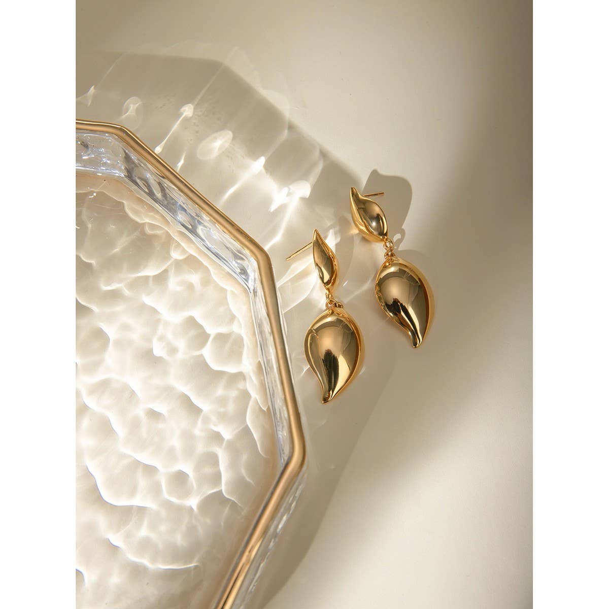 SIMPLE PETAL TEARDROP-SHAPED POLISHED EARRINGS