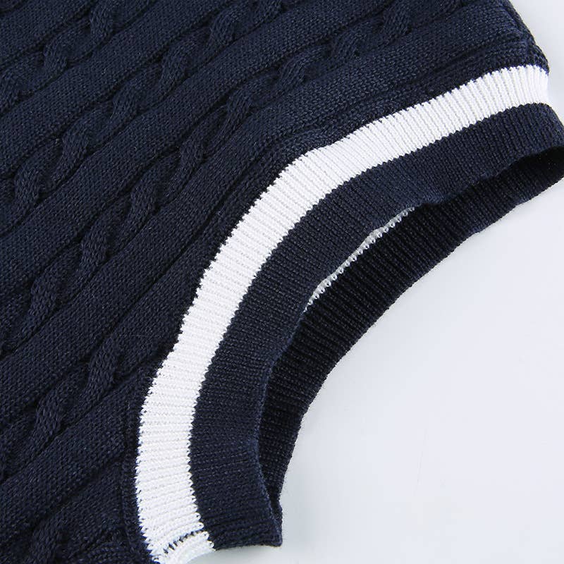 SLEEVELESS LETTER COLOR PATCHWORK V-NECK VEST
