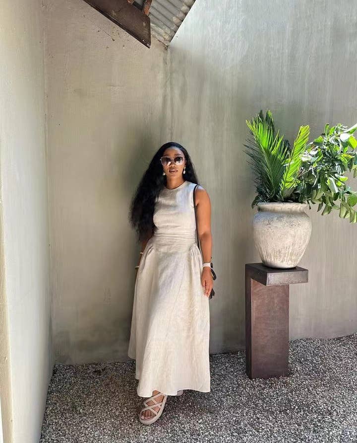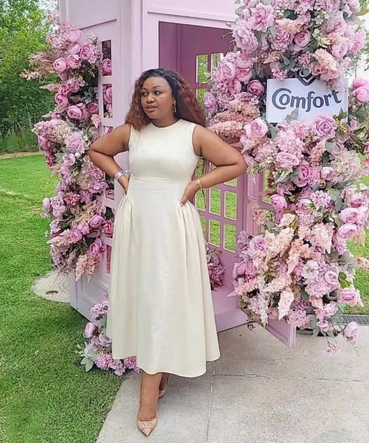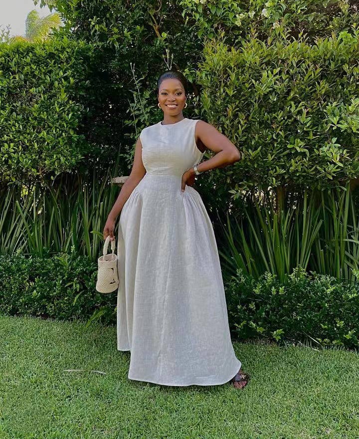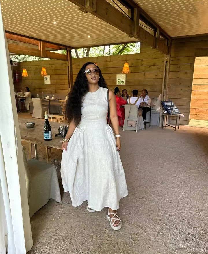 Sleeveless solid-color vest dress with large hem