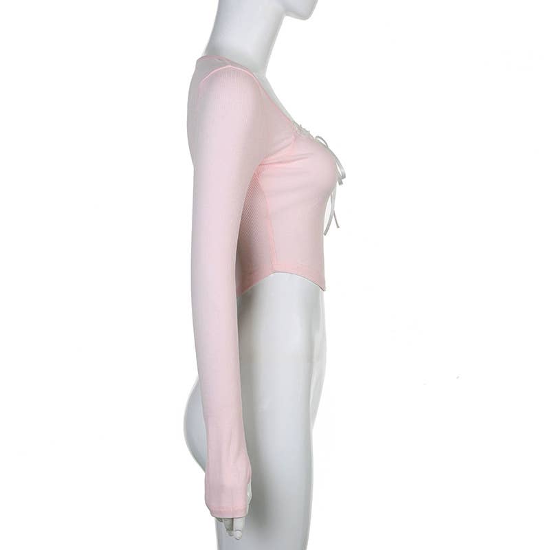 SLIM BOW IRREGULAR LACE PATCHWORK T-SHIRT
