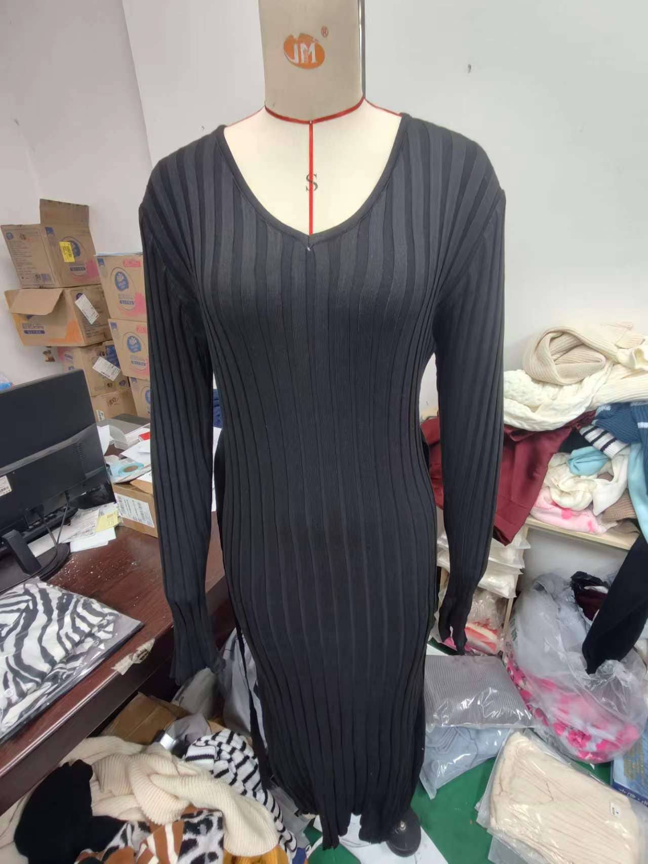 SLIM KNIT SKIRT WITH CASUAL WAIST AND V-NECK