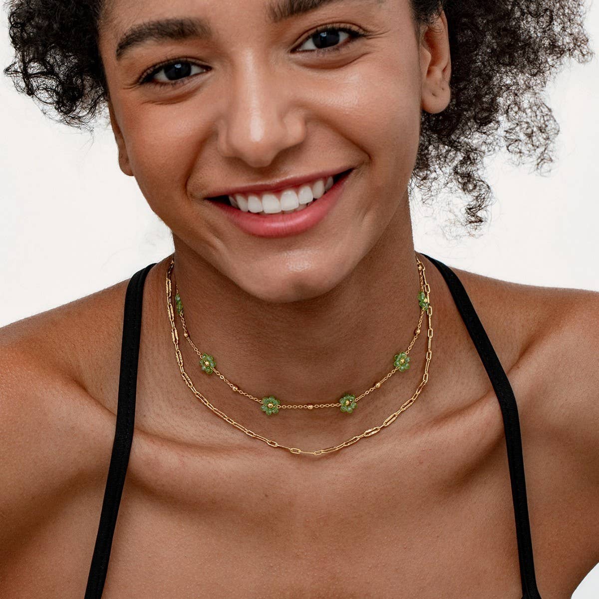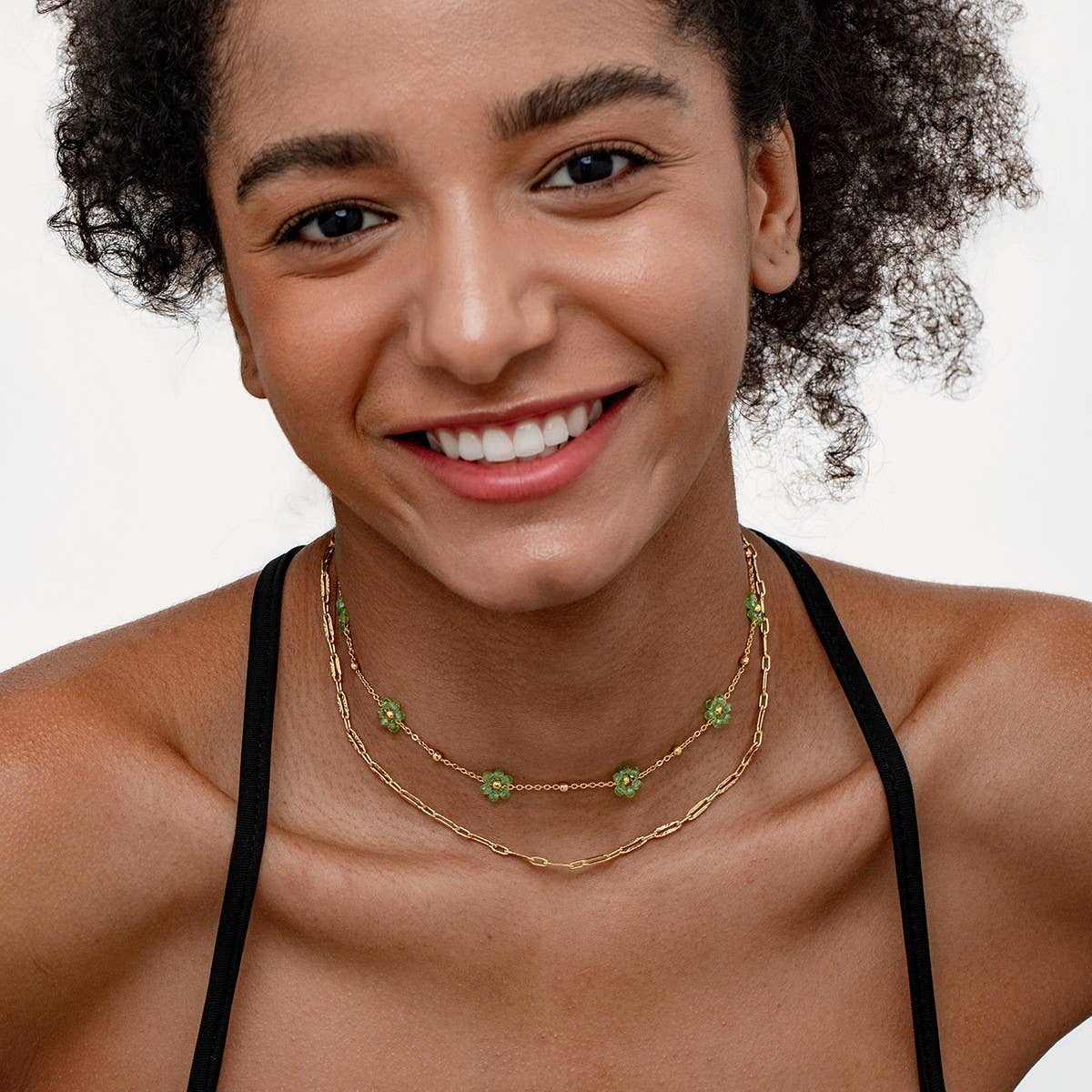 SMILEY FACE FLOWER GLASS BEAD NECKLACE_CWMM3643