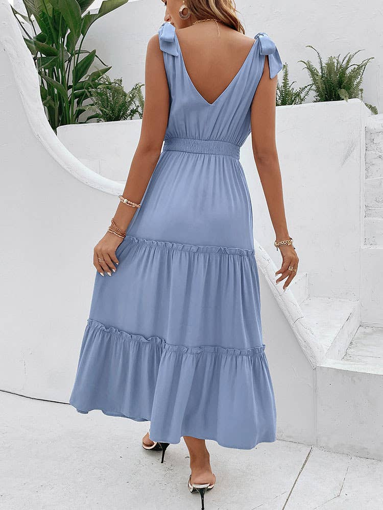 SOLID COLOR BELT HALTER HIGH-WAISTED DRESS