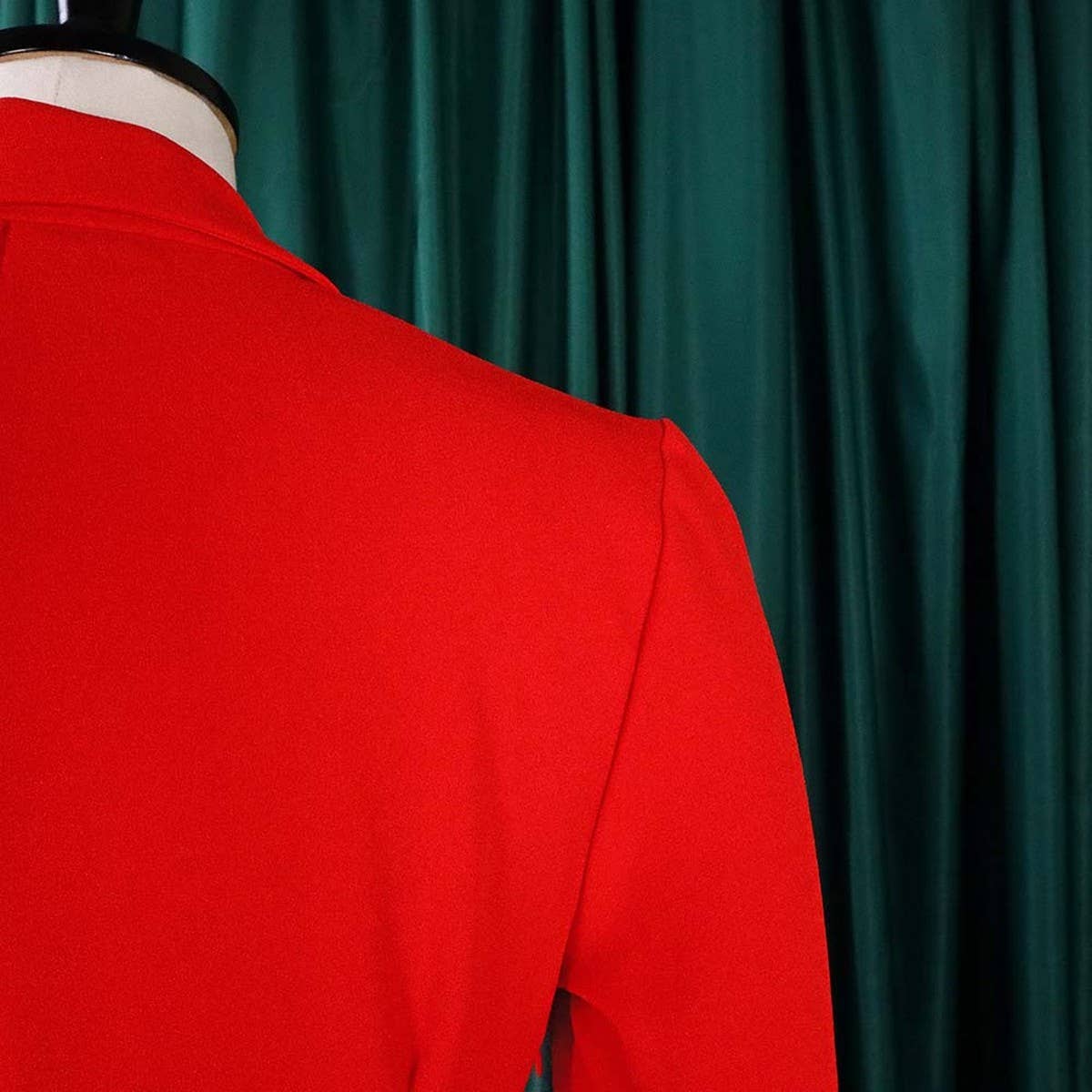 SOLID COLOR ELEGANT SUITCOLLAR PLEATED LAPEL DRESS_CWDMD3718