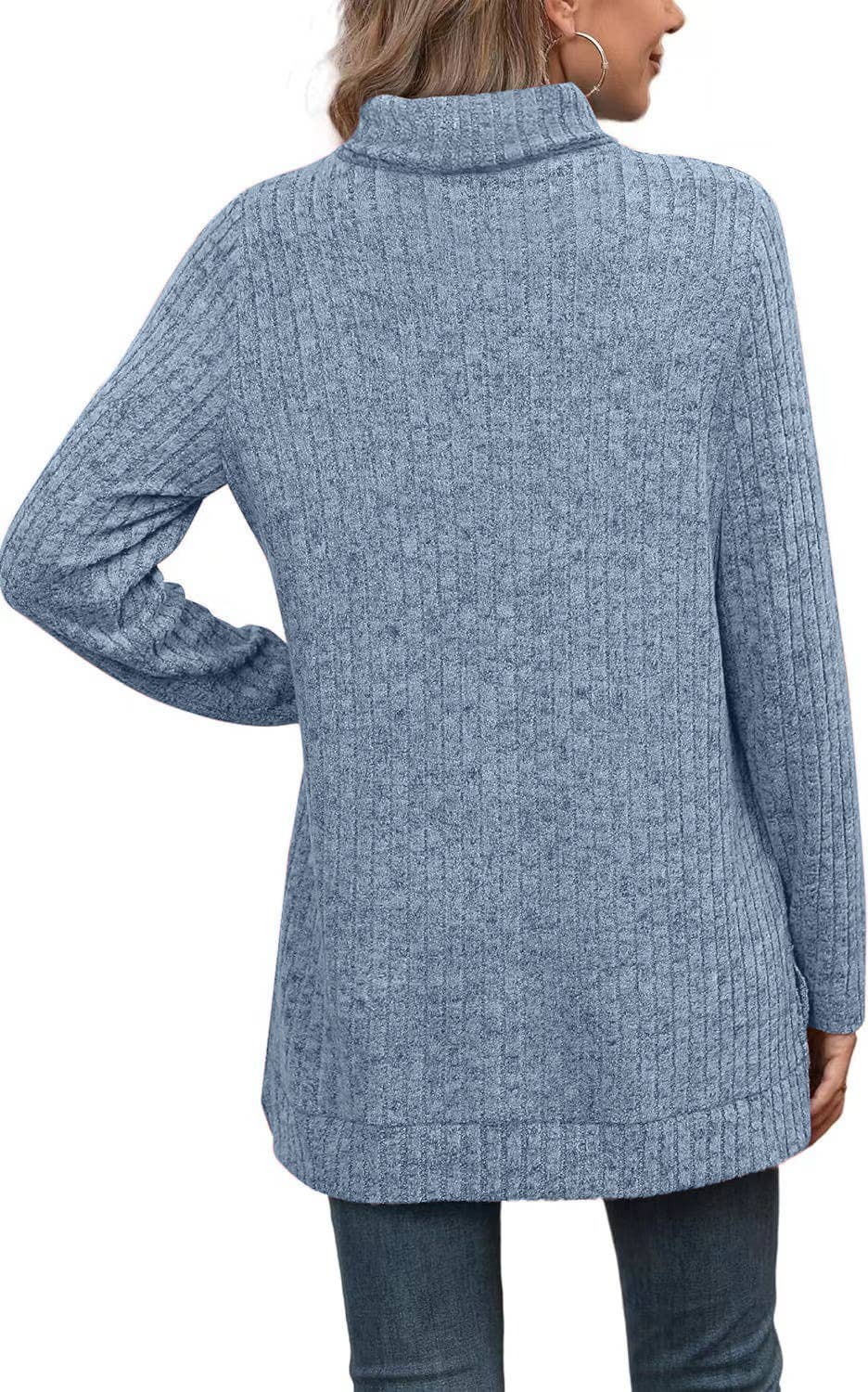 Solid color high neck slit slit loose T-shirt