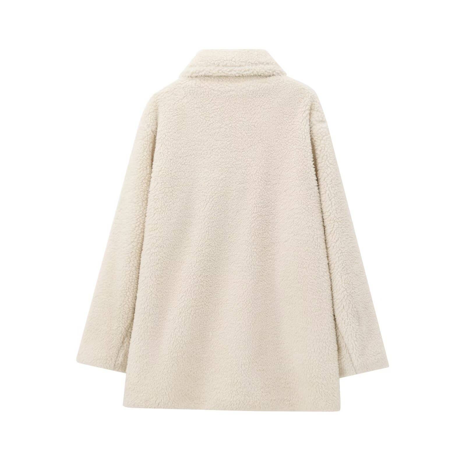 Solid-color lapel woolen overcoat coat