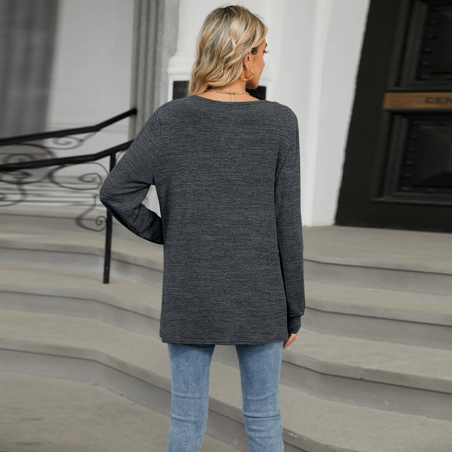 Solid color loose long sleeve T-shirt top