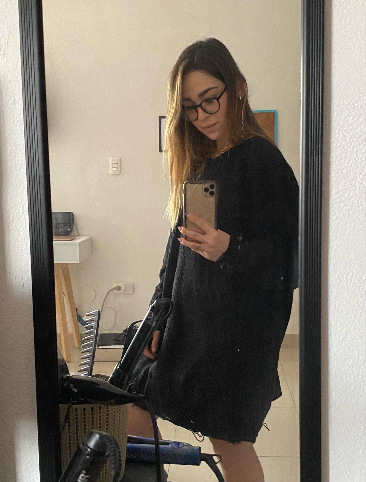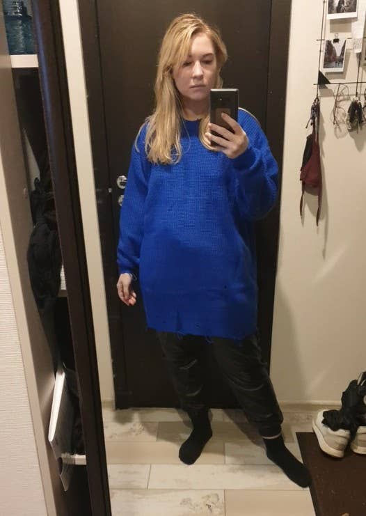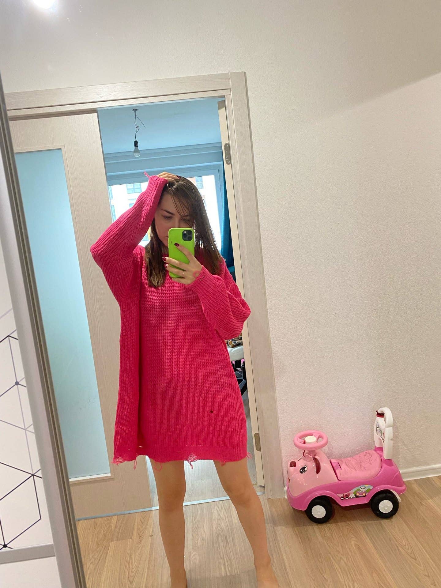 SOLID COLOR RIPPED MID-LENGTH CREW-NECK SWEATER