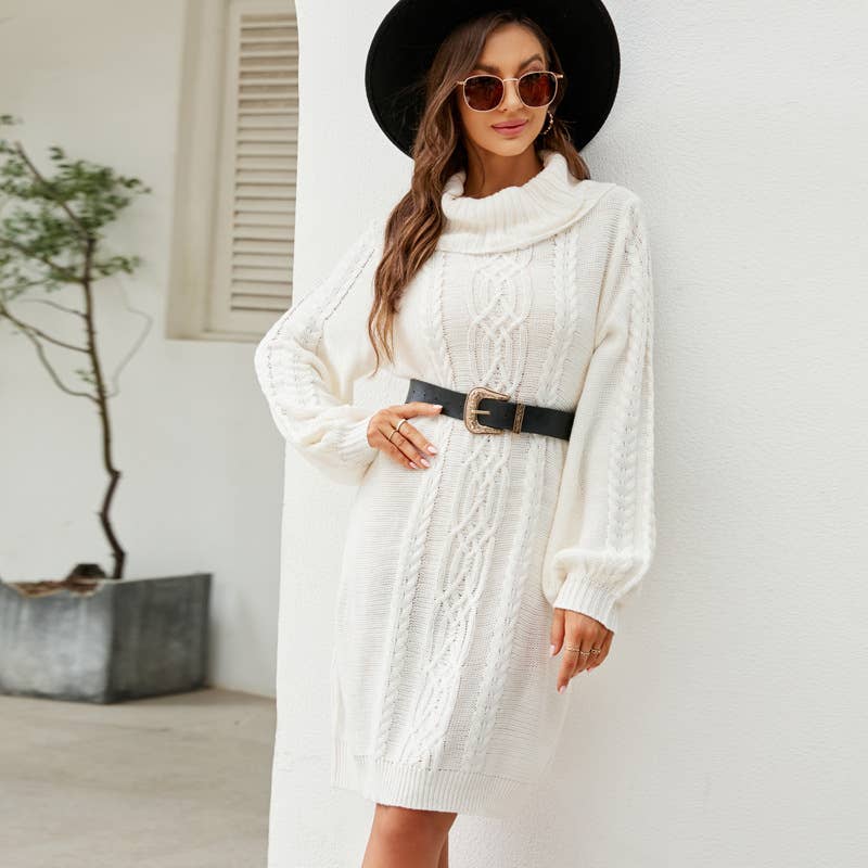 SOLID COLOR TWISTED FLORAL TURTLENECK SWEATER