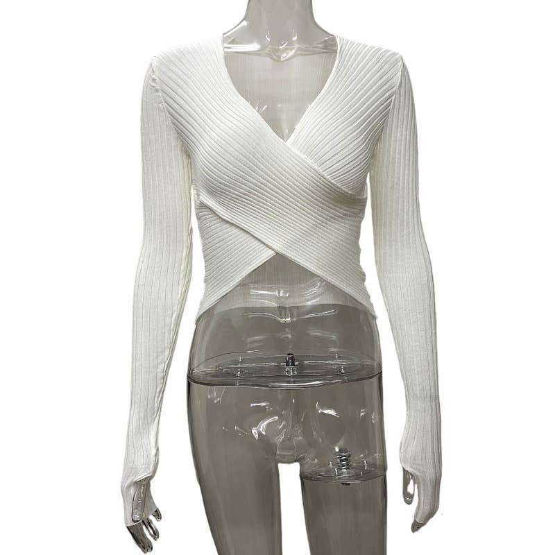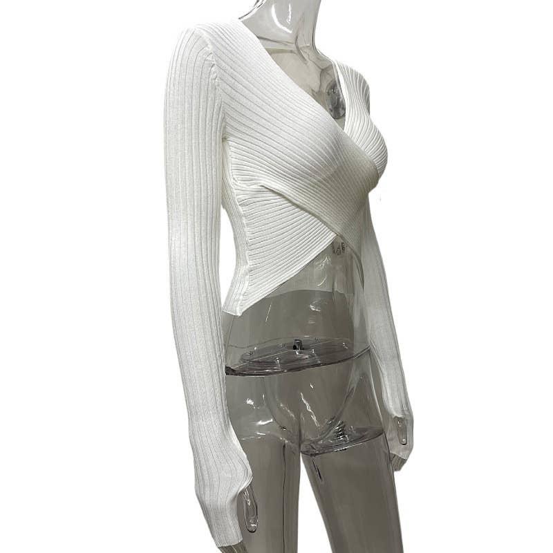 Solid-colored long-sleeved crop top knit sweater