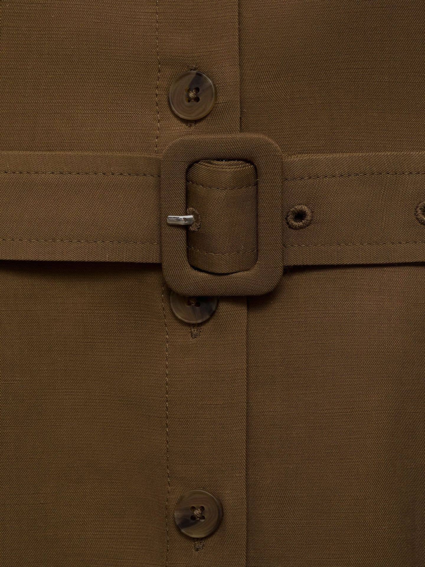 Split sleeveless solid cinched waist shirt dress