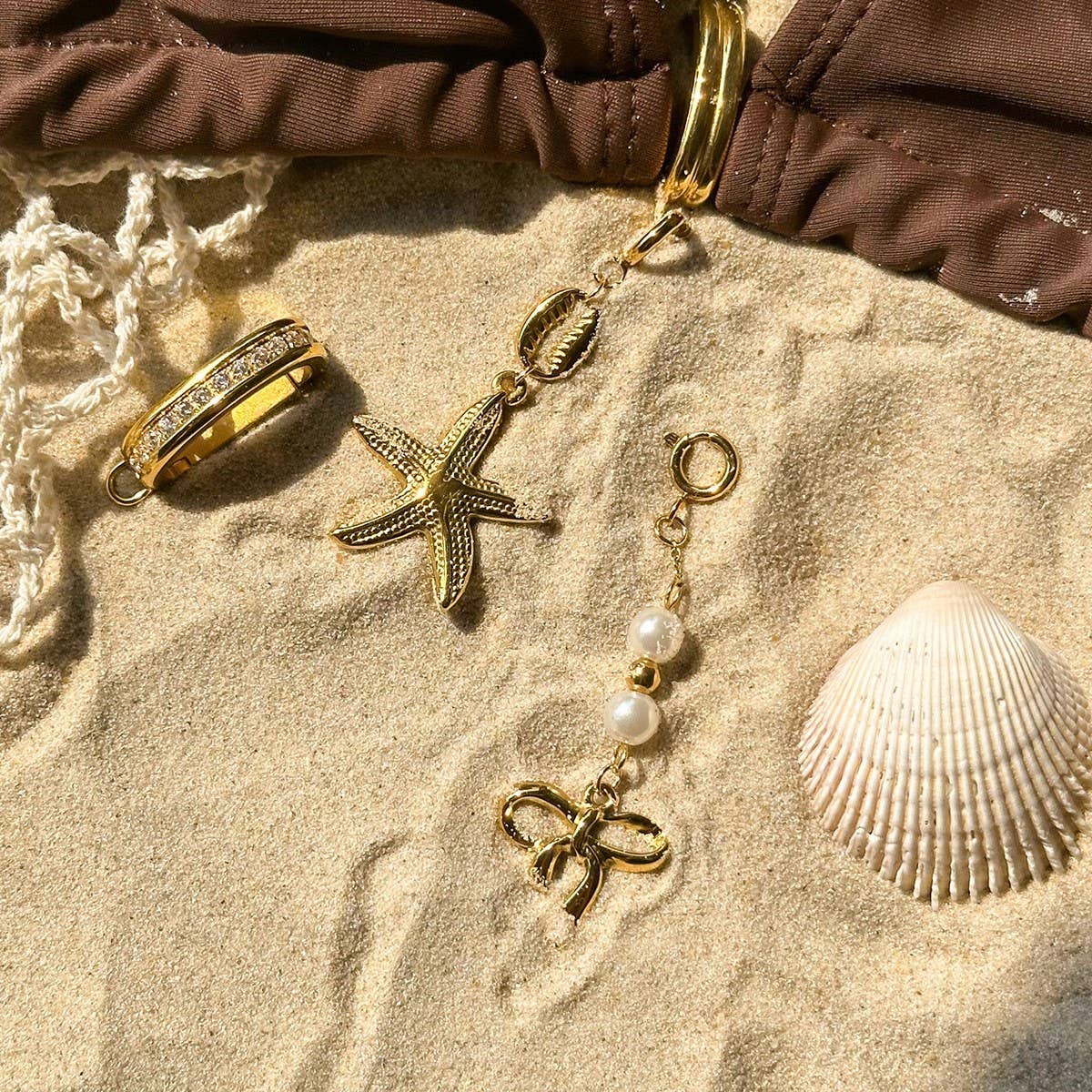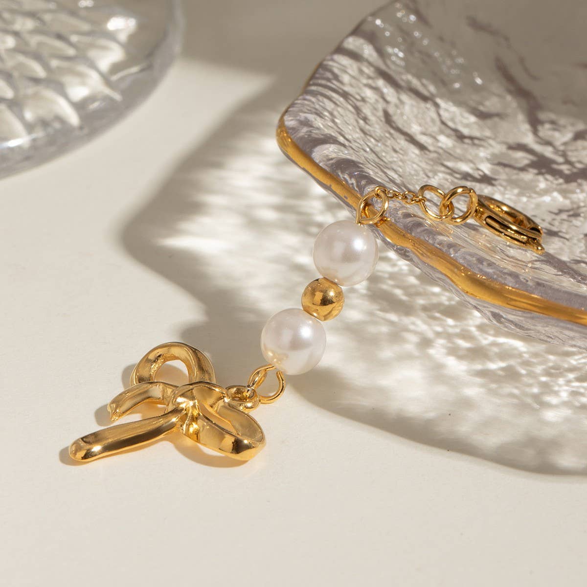STAINLESS STEEL BIKINI BUCKLE BOW PEARL PENDANT