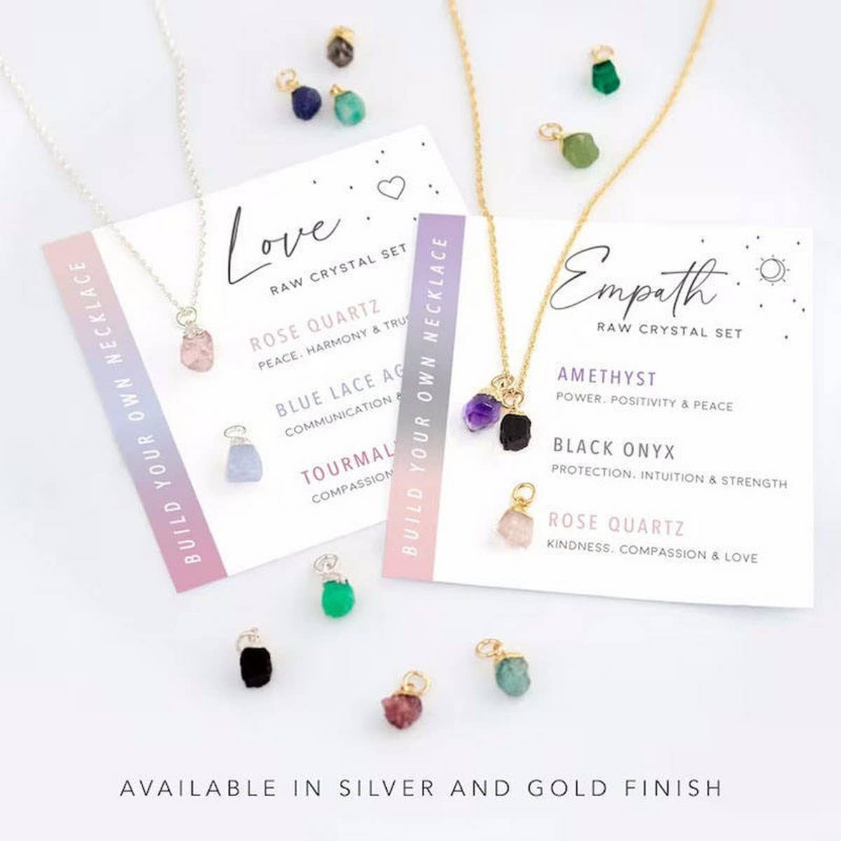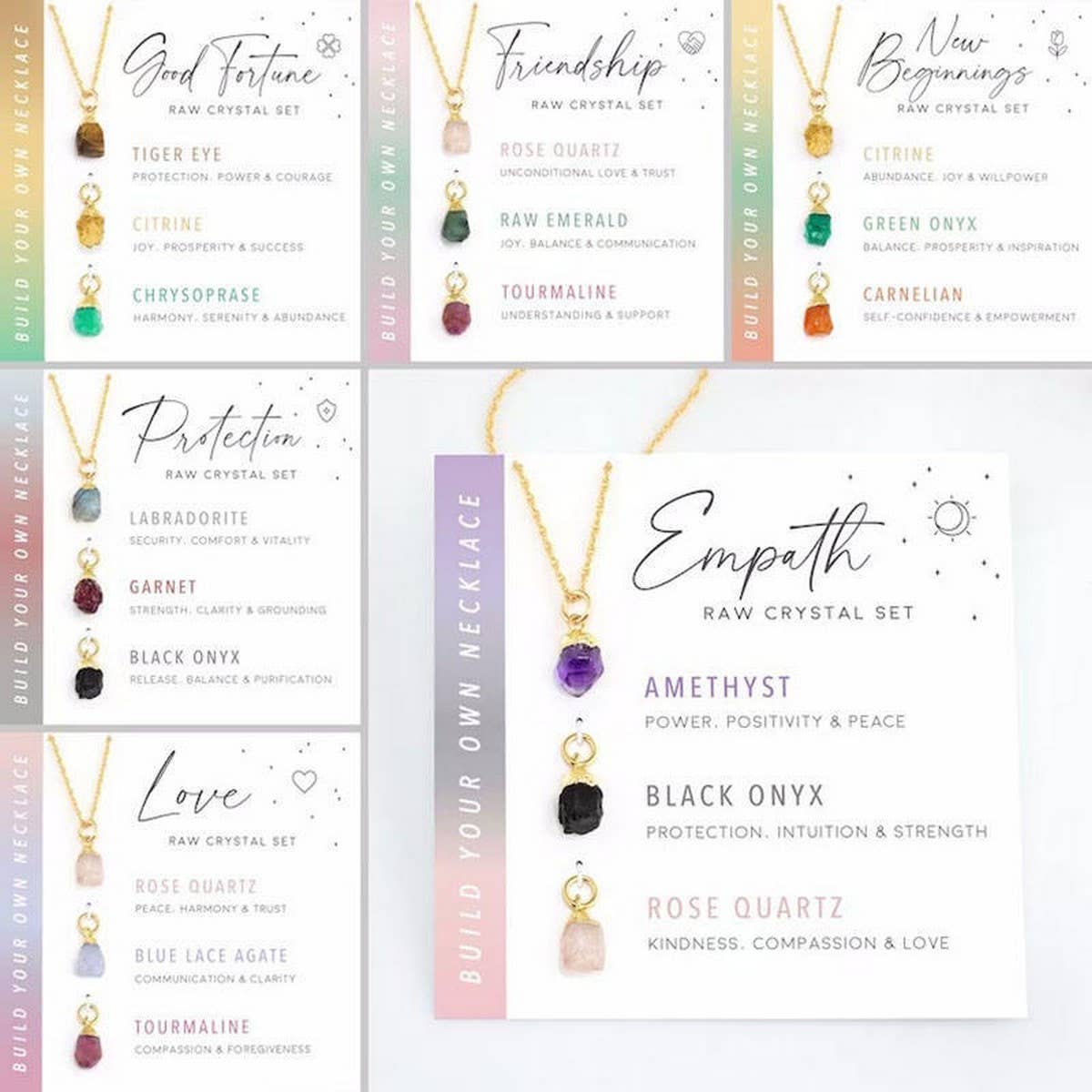 STAINLESS STEEL NECKLACE NATURAL CRYSTAL PENDANT SET