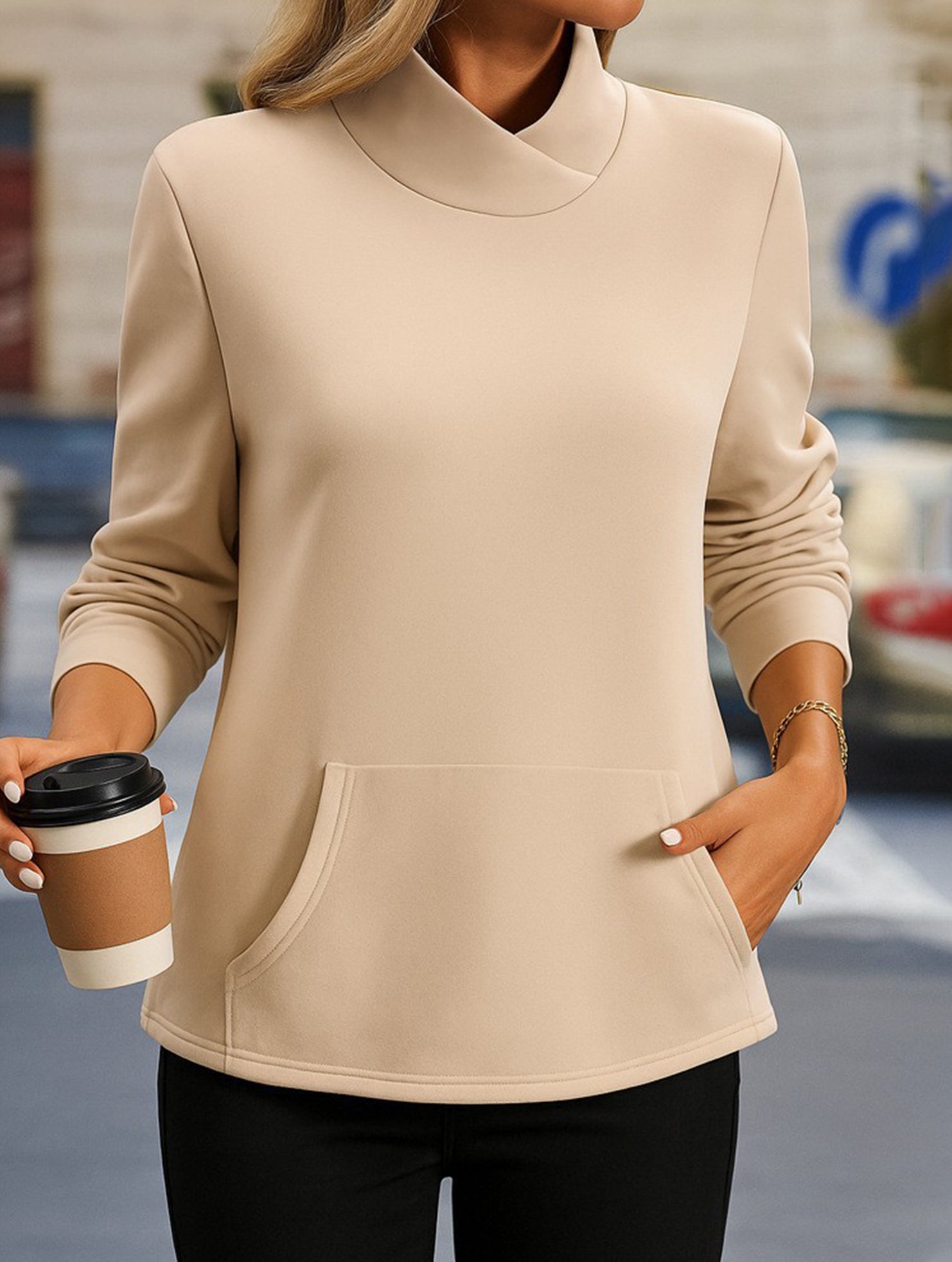 Stand collar long sleeve pullover sweatshirt