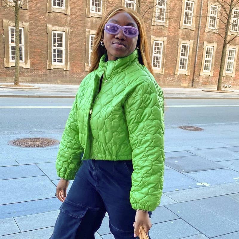 Stand collar solid color love short padded jacket