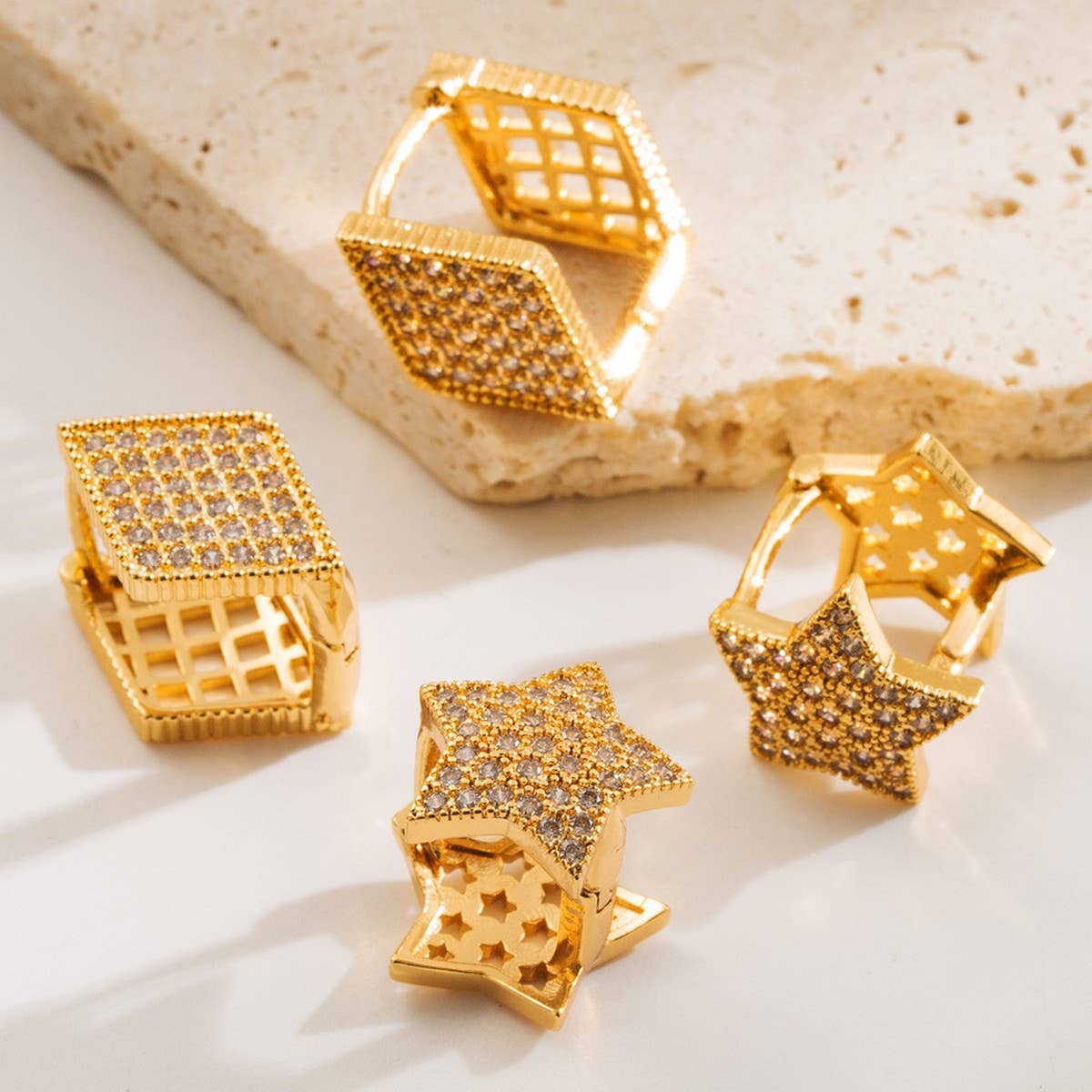 Star & Diamond CZ Hoop Earrings Dual-Sided Design_CWMM8514