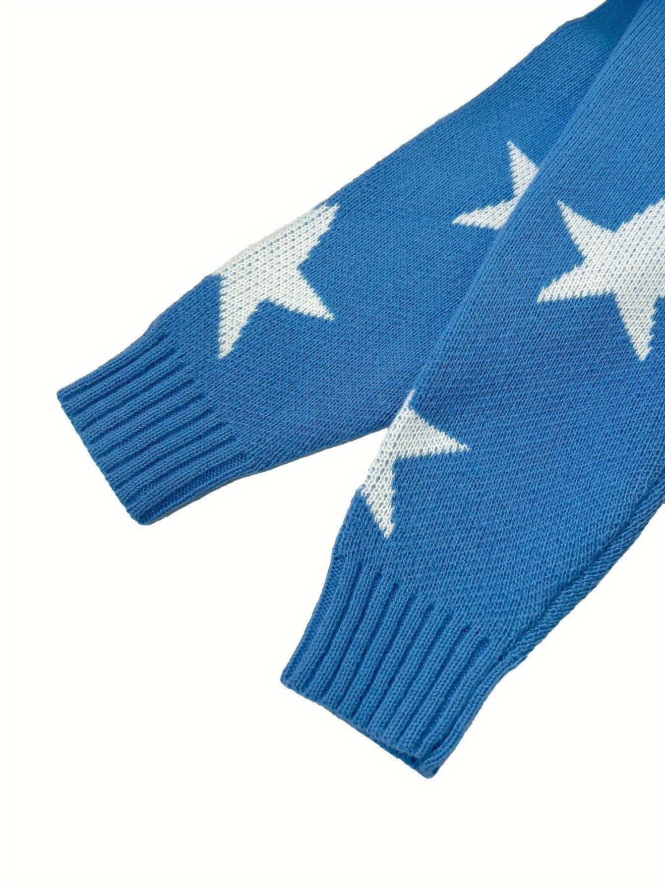 Star-jacquard round-neck long-sleeved sweater