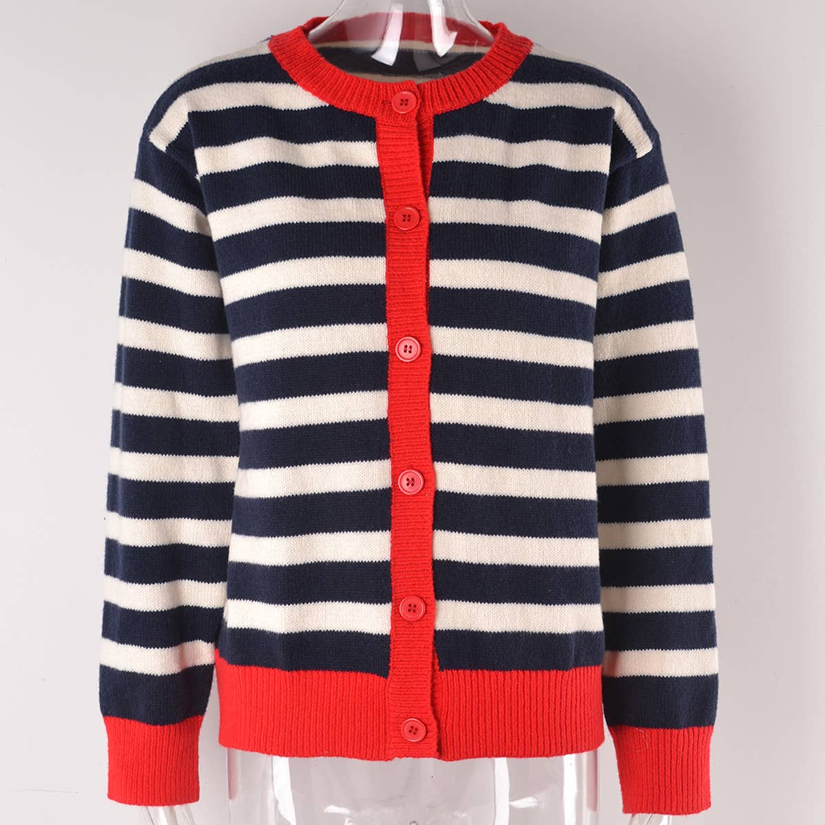 STRIPED CARDIGAN BUTTON KNIT SWEATER