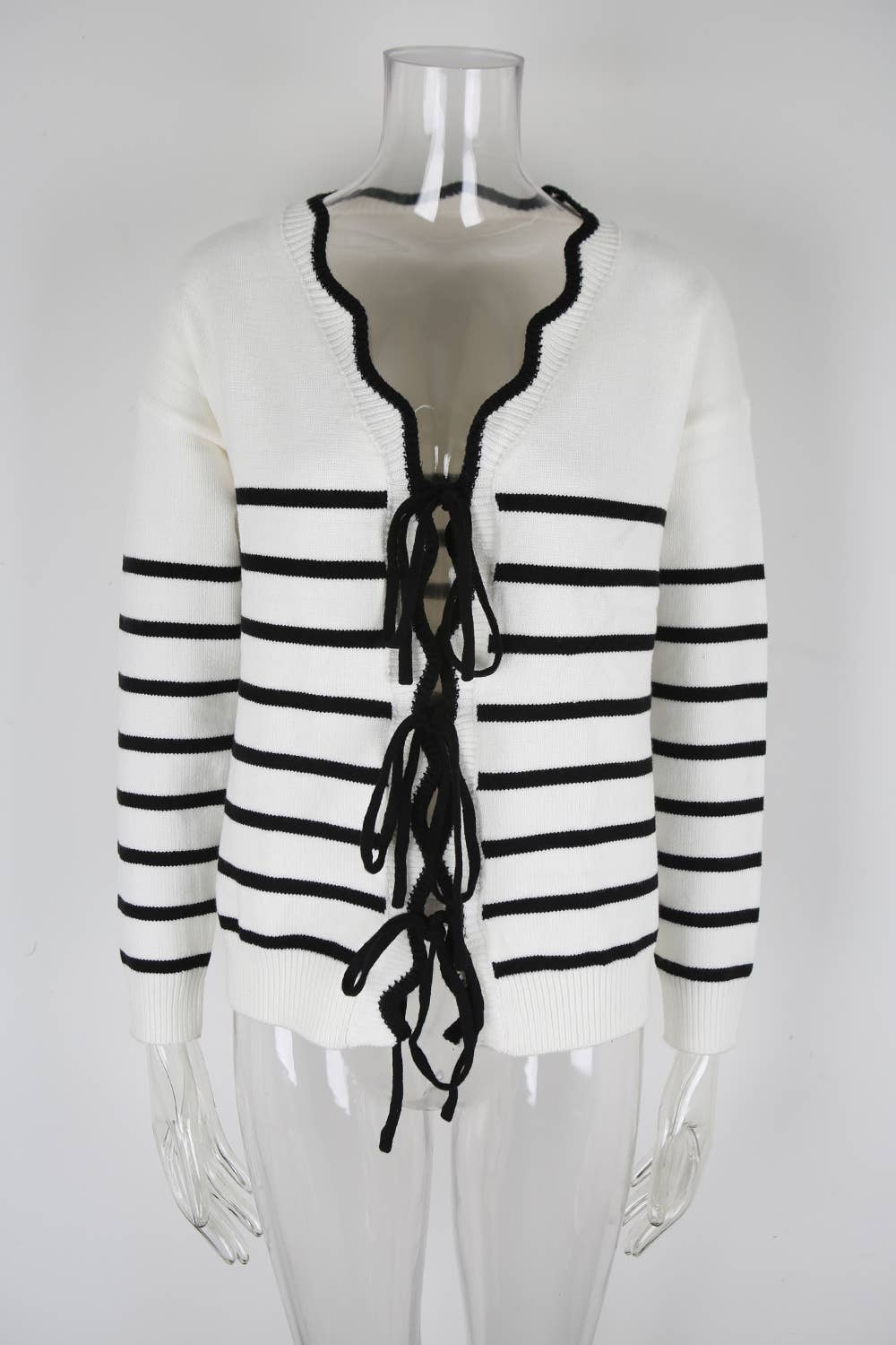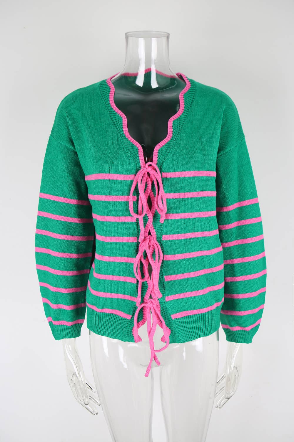 Striped color-blocked loose drawstring cardigan