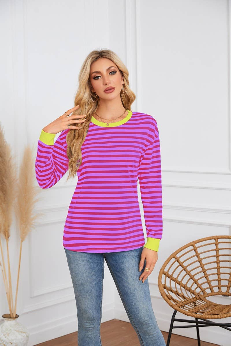 STRIPED CREW-NECK LONG-SLEEVED PULLOVER HOODIE