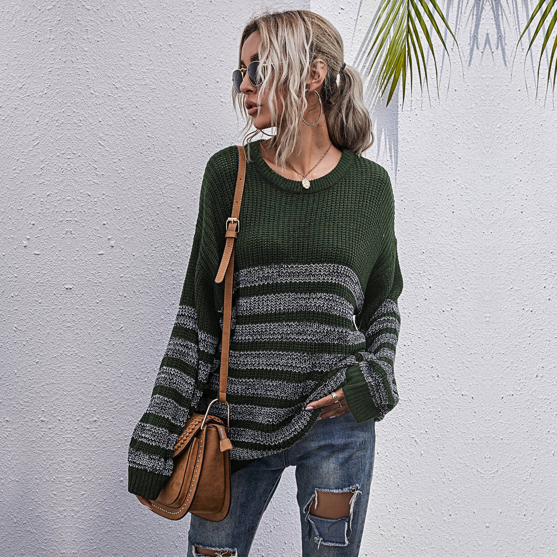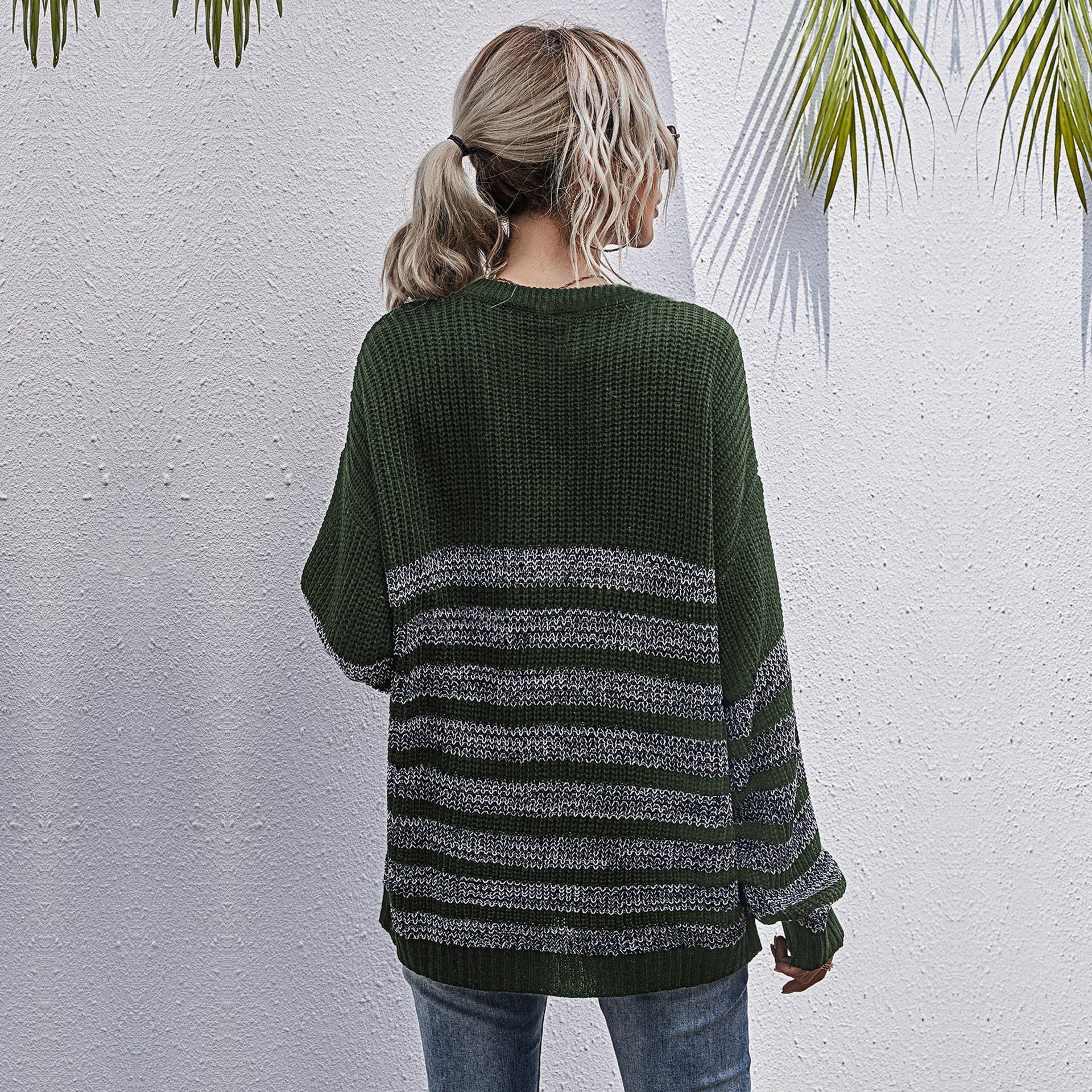 STRIPED CREW NECK LONG-SLEEVED SWEATER WITH BASE