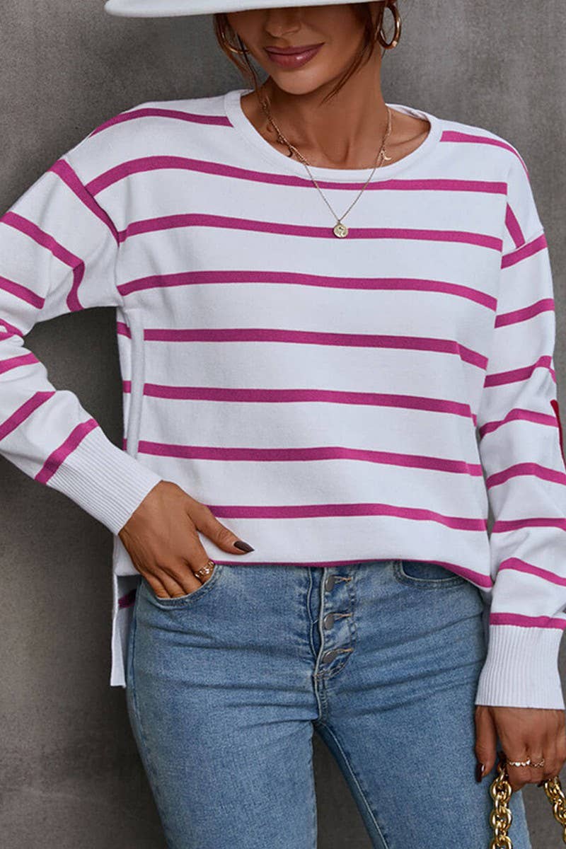 Striped elbow love crew-neck pullover sweater