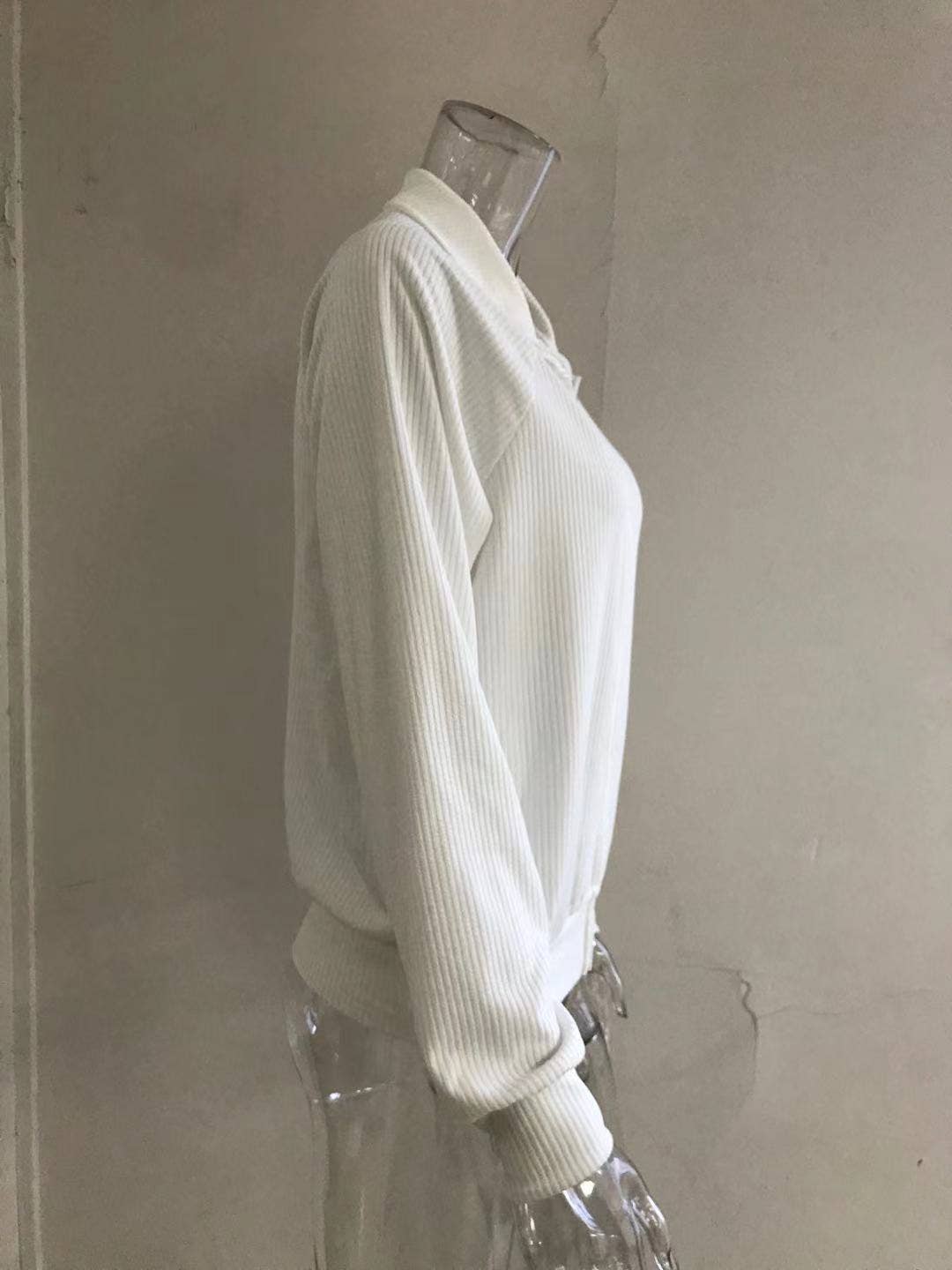STRIPED LAPEL SOLID COLOR KNIT ZIPPER CARDIGAN