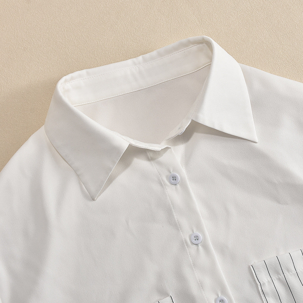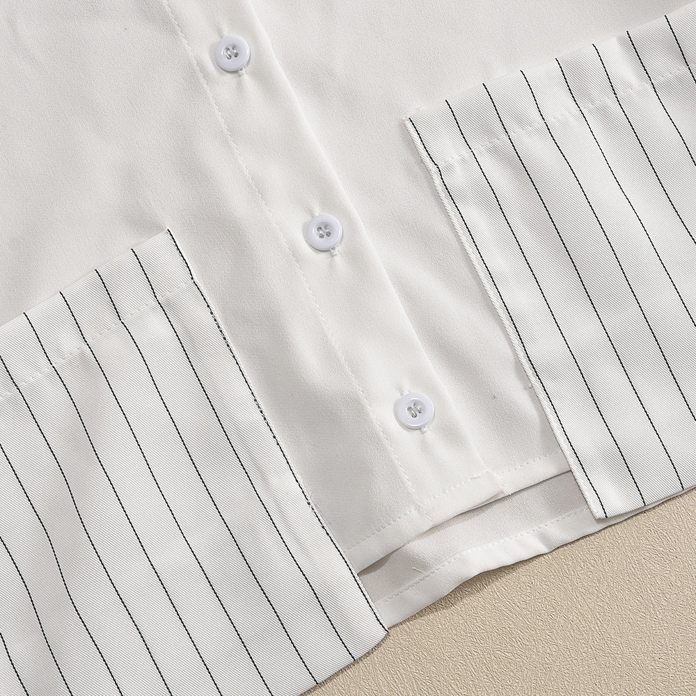Striped Pointed Long Sleeve Crop Shirt Slit Skirt Suit