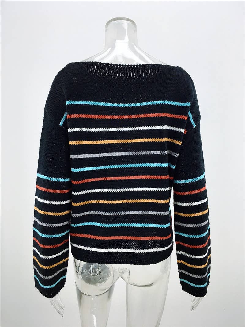 STRIPED SWEATER WITH LOOSE PULLOVER