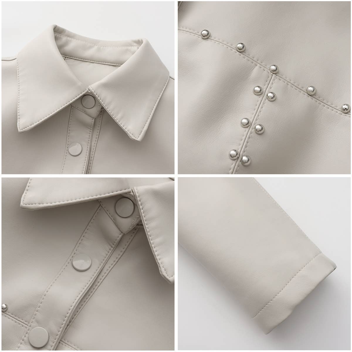 STUDDED LEATHER JACKET BUTTON LEATHER JACKET