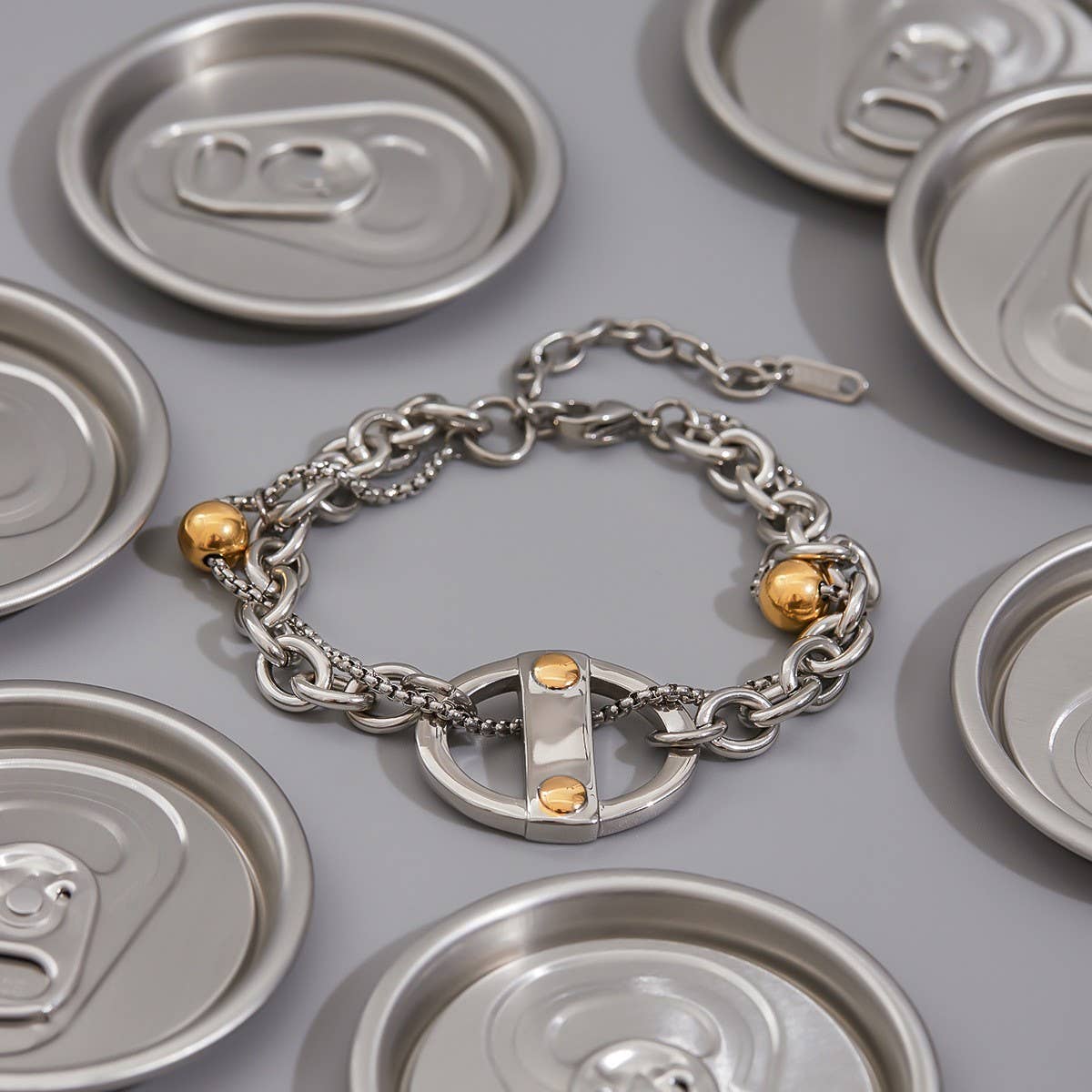 Stylish 18K Gold Mixed Metal Chunky Cross Bracelet_CWAJE4776