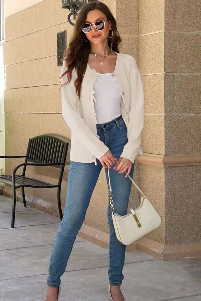STYLISH AND COMFORTABLE BOW WOOL CARDIGAN