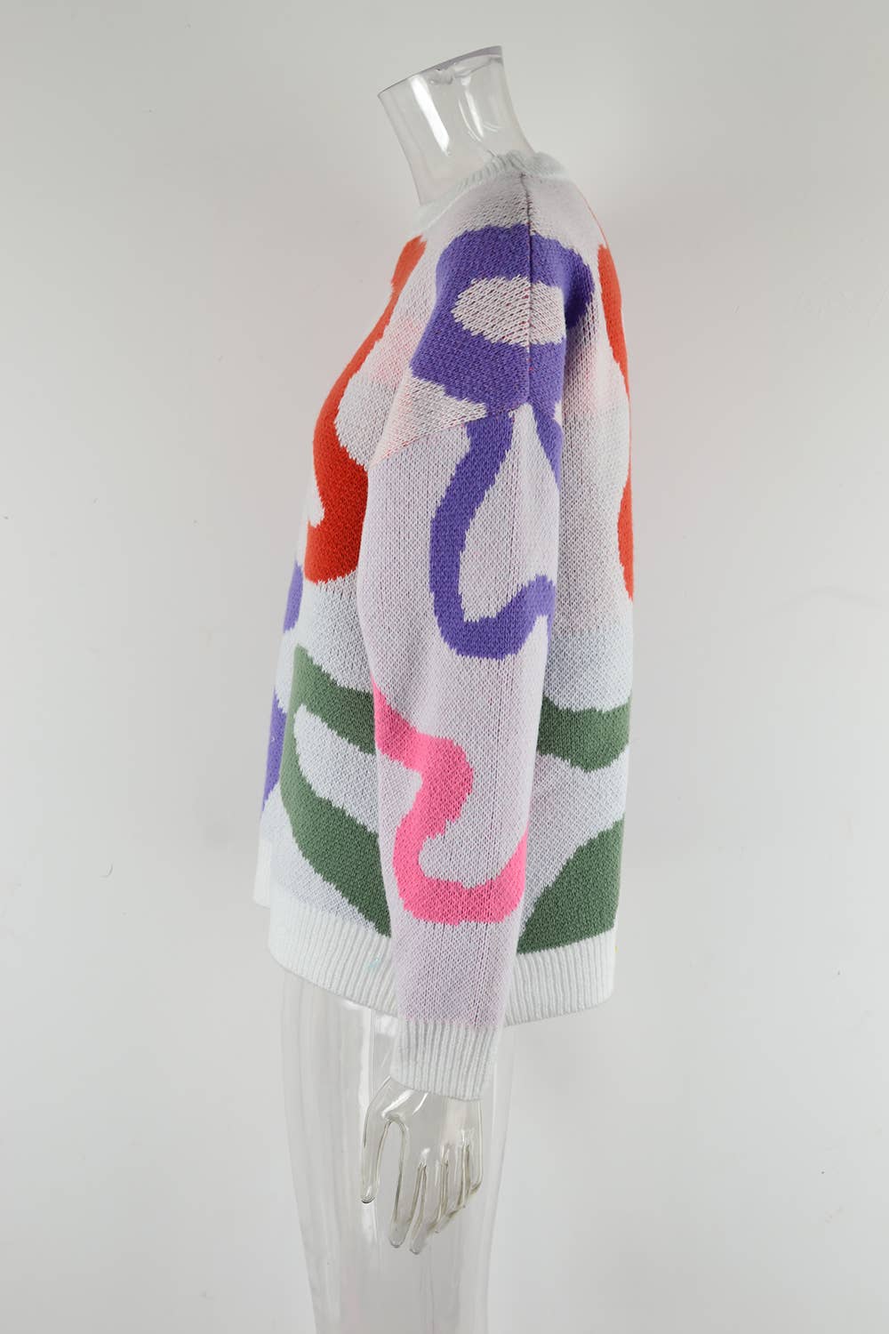 STYLISH CREW NECK SWEATER GEOMETRIC SWEATER