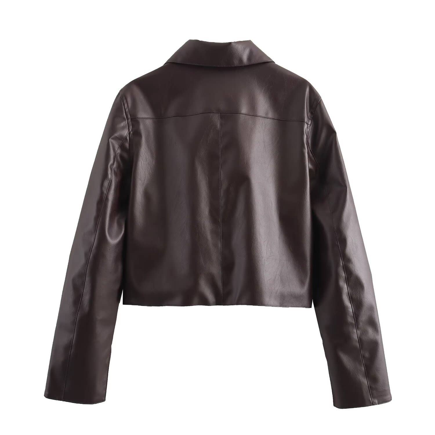 Stylish short PU leather jacket in a solid color