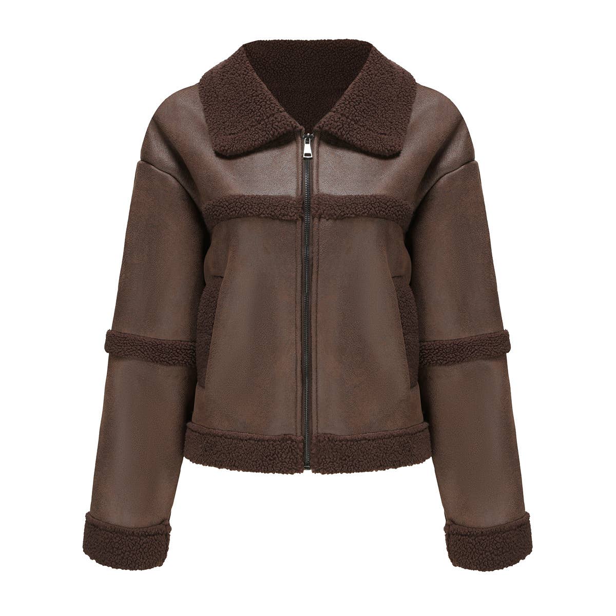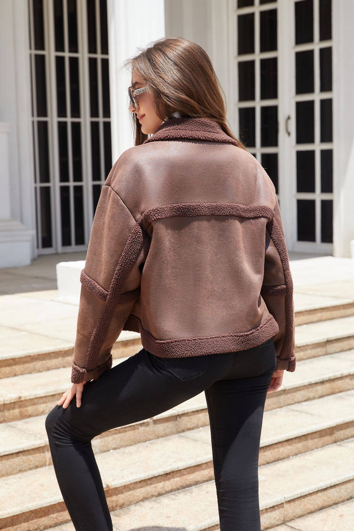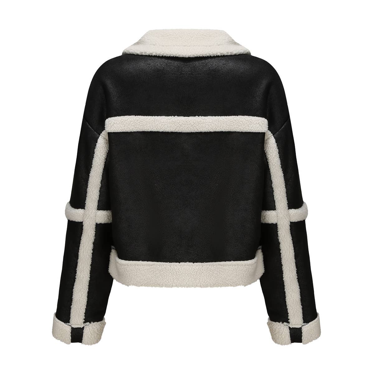 STYLISH WARM FUR COAT WITH FLEECE LAPEL