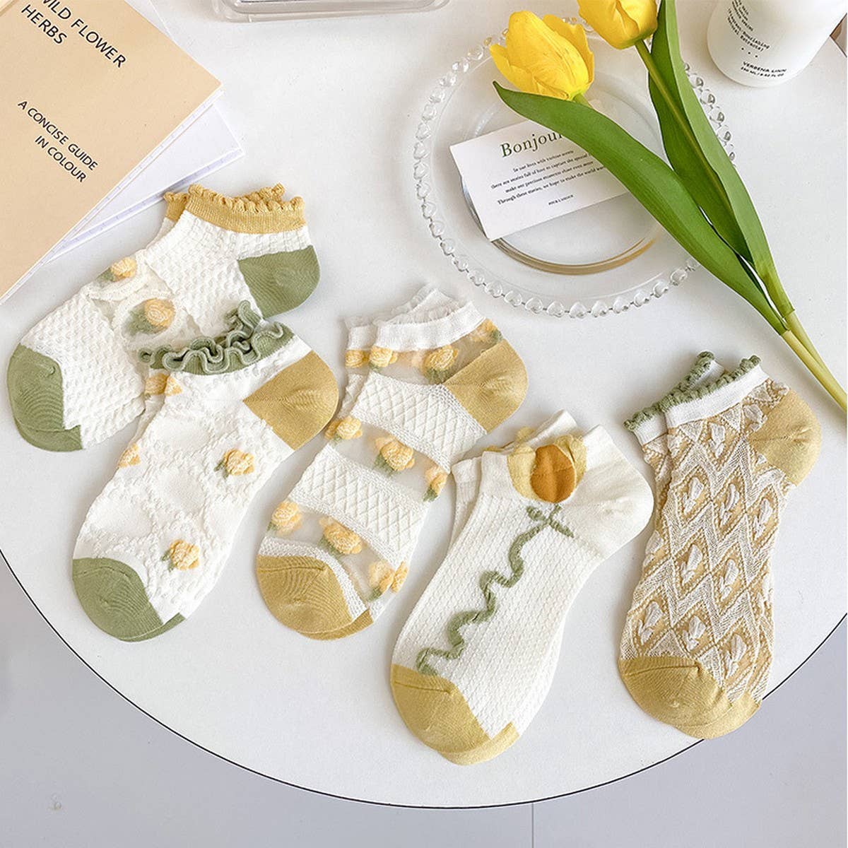 SUMMER GLASS SILK CARTOON FLOWER BOAT SOCKS