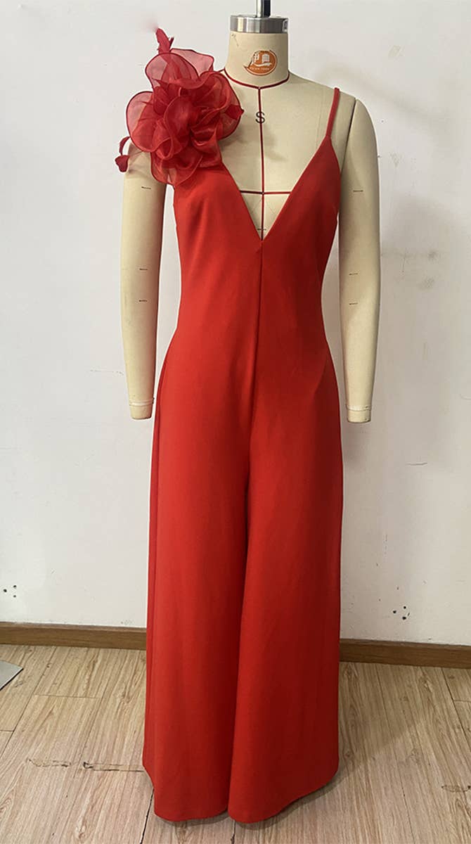 THREE-DIMENSIONAL FLORAL DEEP V CAMISOLE ROMPER