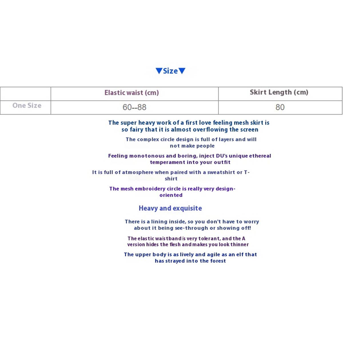 Product attributes\nPattern Polka dots\nCraftsmanship Collage/stitching\nFabric name Mesh\nMain fabric component Polyester (polyester fiber)\nMain fabric component 2 Polyester (polyester fiber)\nSkirt type A-line skirt\nSkirt length Midi skirt\nPopular elements 3D/stereoscopic pattern\nStyle type Fresh and sweet\nMain fabric component content 95% and above\nMain fabric component 2 content 95% and above\nStyle Princess style\nStretch High elasticity\nSize One size Elastic waist 23.62-34.65 inches (60-88 cm), skirt length 31.5 inches (80 cm)\n\nMesh Skirt,Leopard Mesh Skirt,Floral Mesh Skirt,Black Mesh Skirt,solid Color Mesh Skirt,Elastic Waist Skirts,Tiered Elastic Waist Skirt,Comfortable Elastic Waist Skirt,Skirts,Skirts Women,Skirt Set,Skirt Sets For Women,,Women Clothing,Tulle mesh skirt,,Skirt.Mesh,Tulle skirt,Tulle skirts women,Tulle skirt set,Tulle skirt girls,Tulle skirt women,Tulle skirt dress,Tulle skirt black,Tulle skirts with pockets,Tulle skirts with floral prints,Tulle skirts with lace
