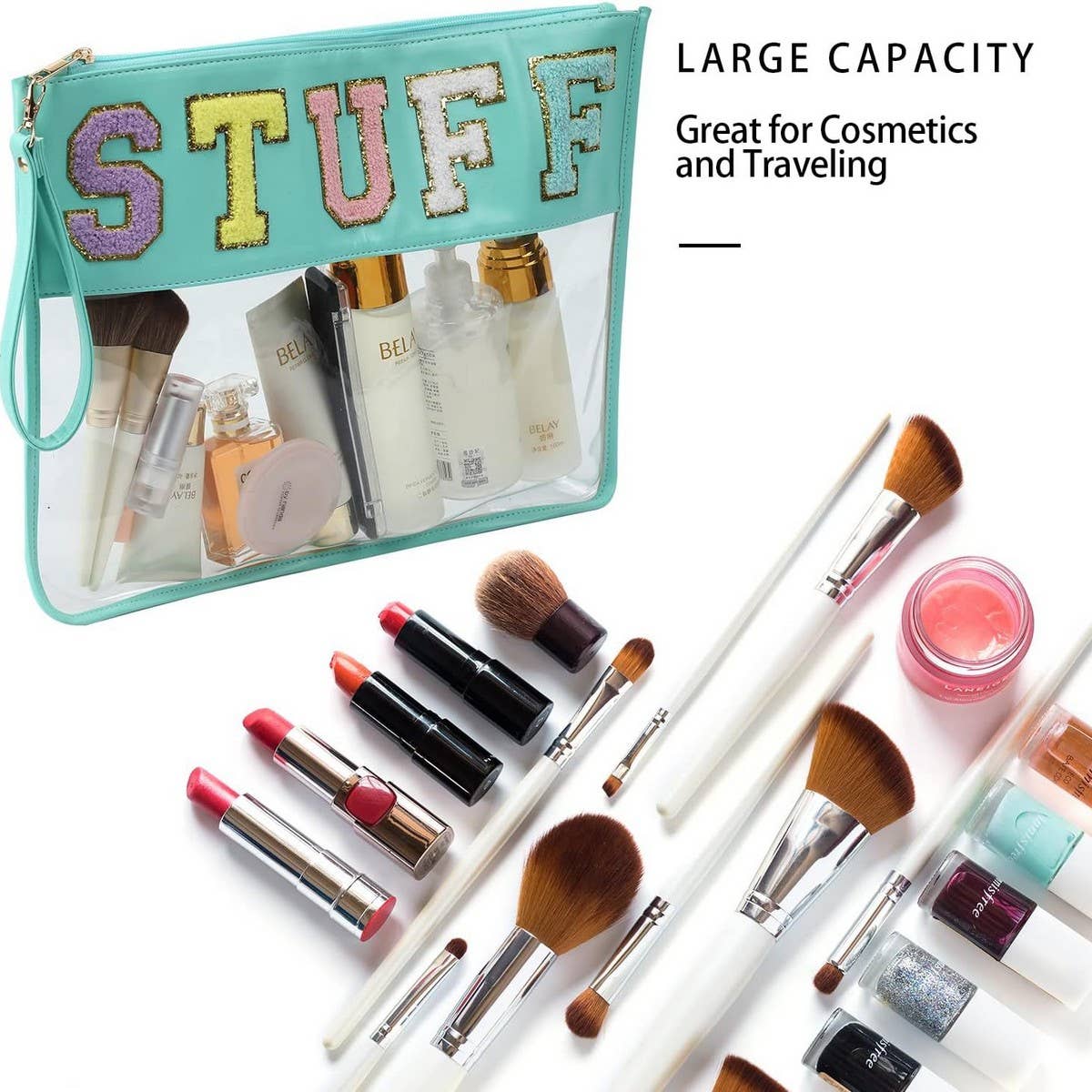 TRANSPARENT WATERPROOF PORTABLE WASH BAG\nSIZE:OS(1)\n100% PVC\nMADE IN CHINA\n\nTRANSPARENT PORTABLE COSMETIC BAG, COSMETIC BAG, COSMETIC BAG, TRAVEL COSMETIC BAG, COSMETIC TRAVEL BAG, COSMETIC STORAGE BAG, COSMETIC BAG FOR TRAVELING WOMEN, COSMETIC BAG, SMAL COSMETIC BAG, LARGE COSMETIC BAG, TRAVEL SIZE COSMETICS, TRAVEL BAG, CONTRASTING CANVAS WASHING COSMETIC BAG, SPLICING LASER PORTABLE TRANSPARENT COSMETIC BAG,SMILING FACE CONVENIENT WATERPROOF WASHING BAG,PLAID COSMETIC BAG, STORAGE BAG, ROUND COSMETIC BAG, TRANSPARENT BAG, PVC BAG,FASHION LARGE-CAPACITY TRANSPARENT COSMETIC BAG,SUITABLE FOR SORTING AND STORING OFFICE SUPPLIES, STATIONERY, COSMETICS, JEWELRY, USB CABLES AND TRAVEL SUPPLIES,MINI SMILEY FACE LETTER STICKER STORAGE BAG,PORTABLE FACE EMBROIDERED SANITARY TOWEL BAG,FASHION PEARL SEQUINED COSMETIC BAG,COTTON QUILTED WASH BAGS, TOILETRY BAGS,ONE SHOULDER CROSSBODY BAG