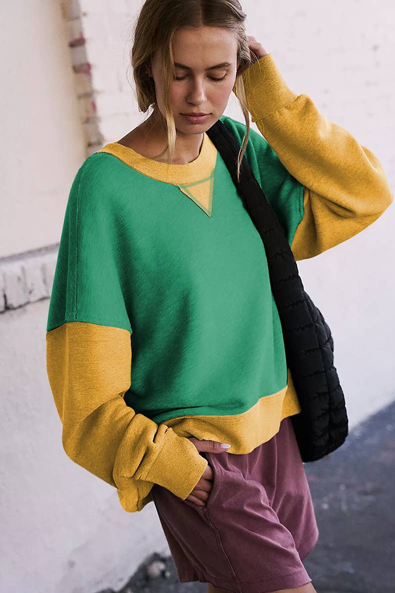 Two-tone round-neck loose pullover hoodie