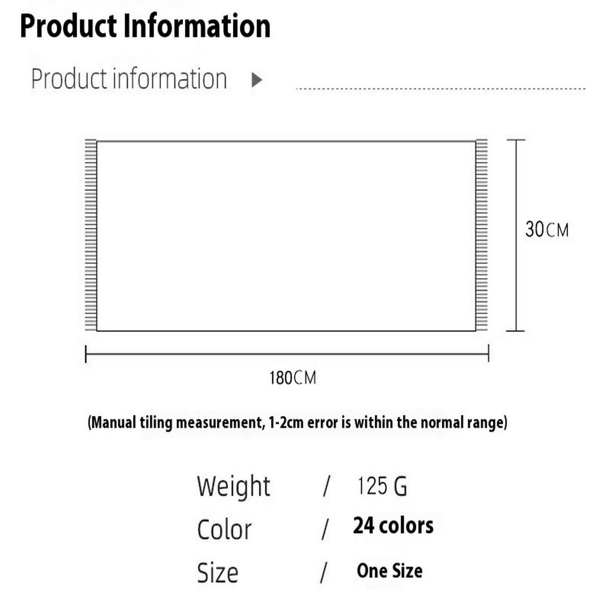 '- Material: 100% wool\n- Size: see picture\n- Weight: 125g\n\nProduct types on the shelves this issue:\nCashmere scarf, cashmere triangle scarf, cashmere shawl, 100% cashmere scarf, oversized cashmere shawl, soft cashmere scarf, winter cashmere scarf, cashmere shawl, light cashmere shawl, cashmere travel shawl, luxury cashmere scarf, cashmere tassel scarf, cashmere plaid scarf, comfortable cashmere shawl, elegant cashmere shawl, ladies cashmere scarf, men's cashmere scarf, neutral tone cashmere scarf, classic knitted cashmere scarf, warm cashmere shawl, fashionable cashmere scarf, cashmere shawl, simple cashmere shawl, double-sided cashmere shawl, blanket cashmere scarf.