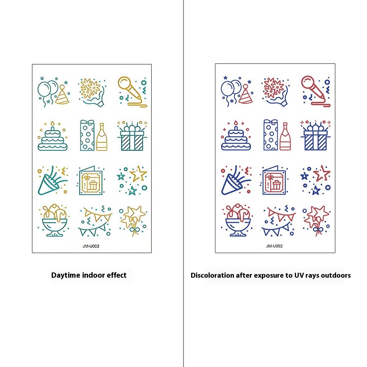 ?Material: Water-transfer UV reactive film\n?Size: 120¡¿76mm (4.7¡¿3.0 inches)\n?Weight: 20g (0.71oz)\n?Product Type: Temporary Tattoo\n\nTypes Of Products That Will Be On The Shelves During This Period:\nTemporary tattoo, Fake tattoo, Waterproof temporary tattoo, Semi permanent tattoo, Temporary tattoo sticker, Temporary tattoo for adults, Temporary tattoo for kids, Temporary tattoo for women, Temporary tattoo for men, Minimalist temporary tattoo, Floral temporary tattoo, Butterfly temporary tattoo, Tribal temporary tattoo, Henna temporary tattoo, Gold foil temporary tattoo, Glitter temporary tattoo, Halloween temporary tattoo, Festival temporary tattoo, Temporary sleeve tattoo, Temporary arm tattoo, Temporary finger tattoo, Temporary back tattoo, Temporary face tattoo, Tattoo sticker set, Long lasting temporary tattoo, Realistic temporary tattoo, Cute temporary tattoo, Temporary tattoo for parties, Temporary tattoo kit.