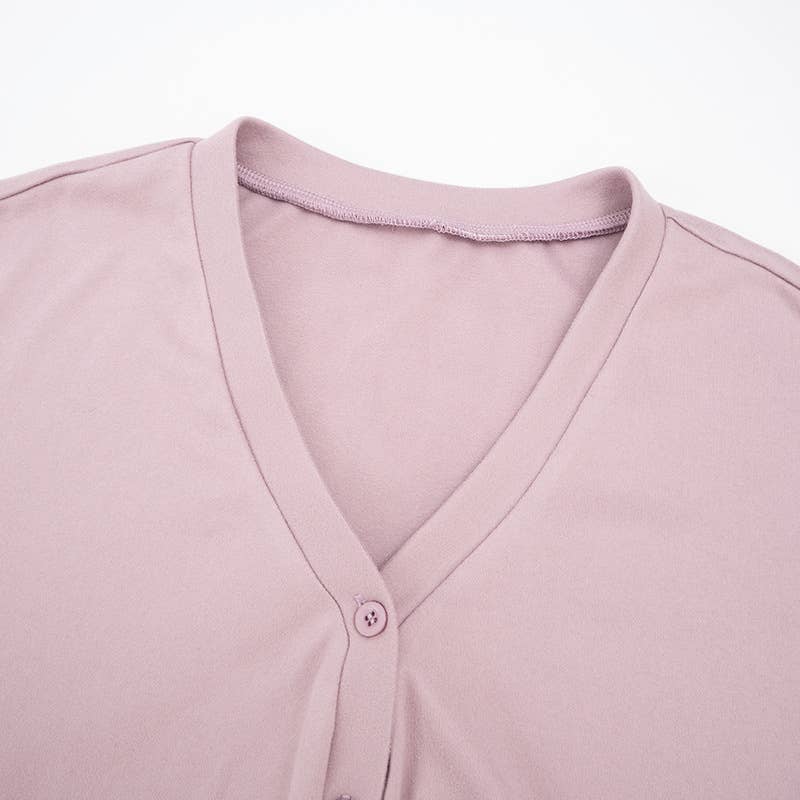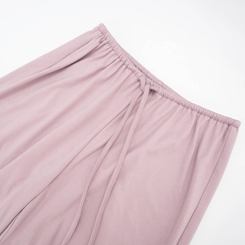 V-neck fitted cardigan lace-up wide-leg pant set