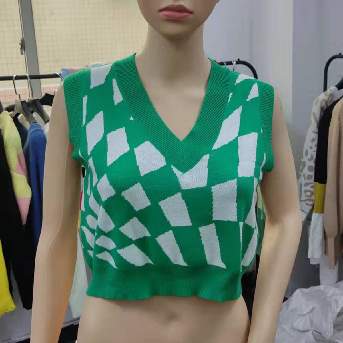 V-NECK KNITTED RHOMBOID MATCHING SHORT VEST STRAP