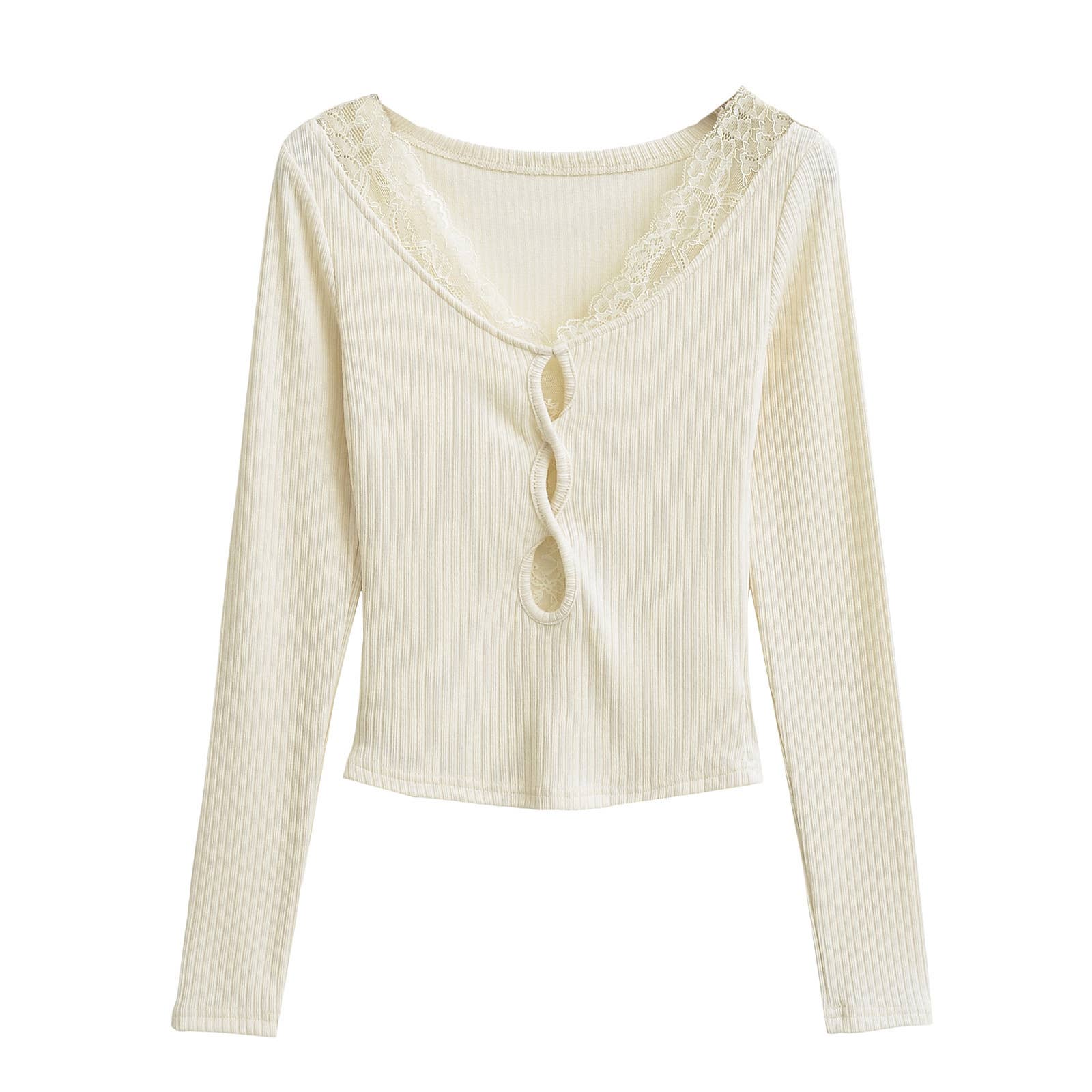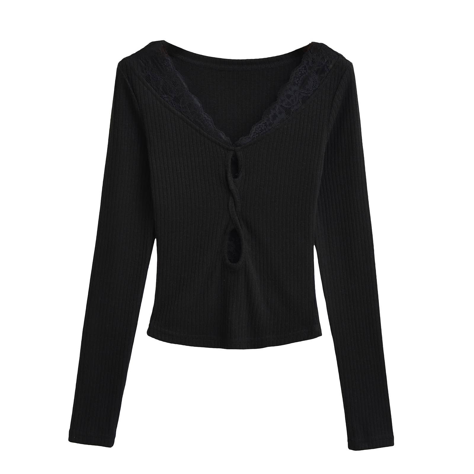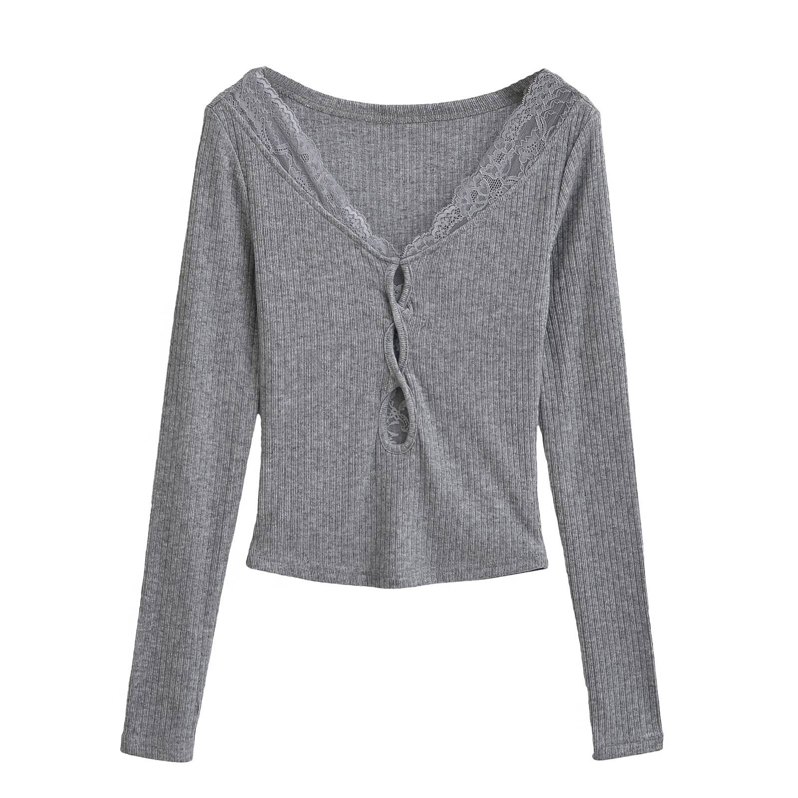 V-neck lace patchwork cutout long-sleeved Top