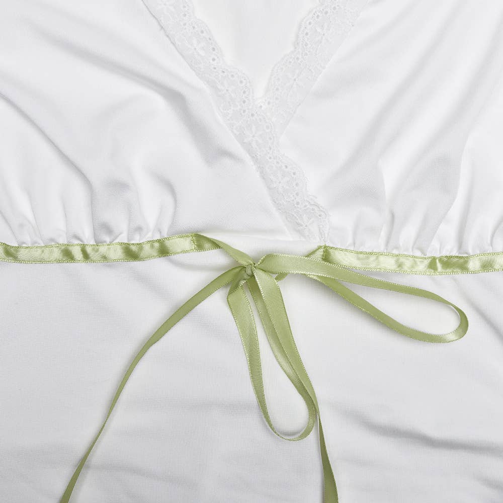 V-neck lace-trimmed bow sexy slimming T-shirt