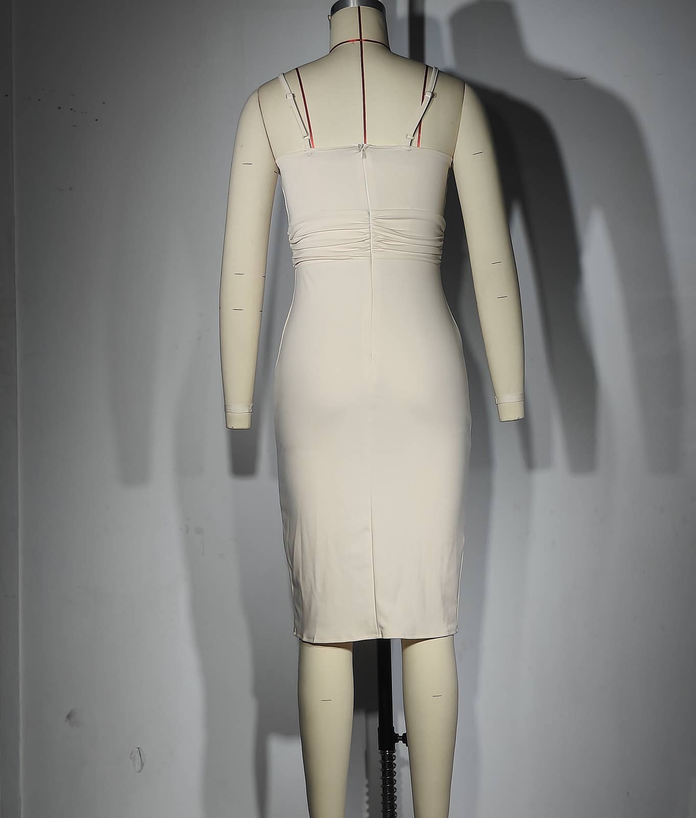 V-NECK SEXY WRAP HIP SPLIT HALTER DRESS